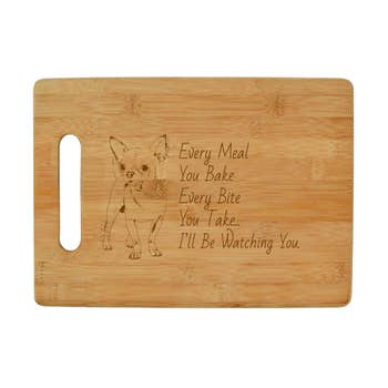 Fabriqué à partir de bambou. Disponible en 5 tailles. Pour les soins et le nettoyage, essuyez avec un chiffon humide. L'huile minérale de qualité de cuisson peut être utilisée pour ramener l'éclat original au besoin. Veuillez noter : chaque couleur de planche varie par pièce. Certaines planches peuvent graver plus foncées que d'autres, mais la profondeur de gravure restera la même en raison des mêmes réglages utilisés. * La plupart de nos planches à découper sont fabriquées en dehors des États-Unis puis gravées/personnalisées dans notre boutique à San Diego, en Californie.