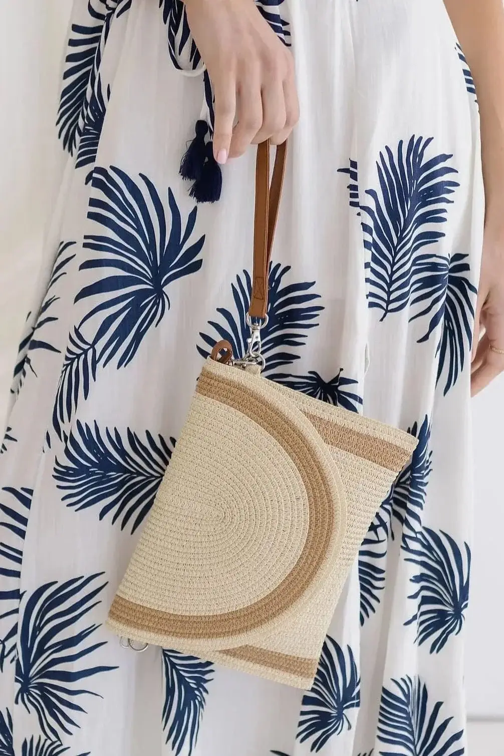 Sac à bandoulière/pochette en paille rayée Georgia MB0215