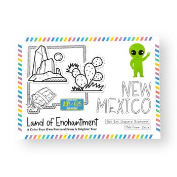 Célébrant le fait que le Nouveau-Mexique et le Sud-Ouest sont essentiellement remplis d'extraterrestres. Également disponible en T-shirt, aimant, carte de vœux et autocollant. Carte postale 10x15 cm imprimée sur du papier cartonné brillant de 96 lb. Conçue avec joie exclusivement par Colossal Sanders.