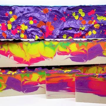 Célébrez Día De Los Muertos avec notre savon coloré et parfumé à base de cristaux de sucre pétillants, de caramel au beurre et de vanille douce. Nos savons sont fabriqués à la main en petites quantités et contiennent plus de 25 % de glycérine végétale, qui hydrate la peau grâce à une mousse riche et luxueuse qui se rince proprement, laissant la peau nettoyée et soyeuse. Notre formule est végétalienne et ne contient pas de laurylsulfates de sodium, de parabènes, d'OGM et de gluten. Nous utilisons des huiles essentielles pures et des huiles parfumées populaires pour optimiser le parfum et l'expérience. Idéal pour les détaillants spécialisés dans les cadeaux, les produits pour le bain et les produits de soins personnels ; nos savons sont disponibles en pain, en pain découpé et en barres rétractables.