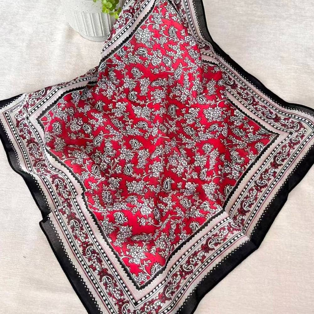 FSF-MAG - Écharpe carrée de 30 pouces 100 % acrylique Border Patte fleuri
