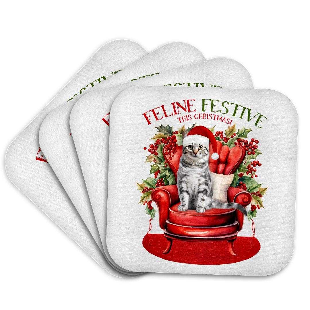 Dessous de Verre Chat de Noël | Cadeau de Fête Amusant | Décoration de Bar à Domicile en vente B2B