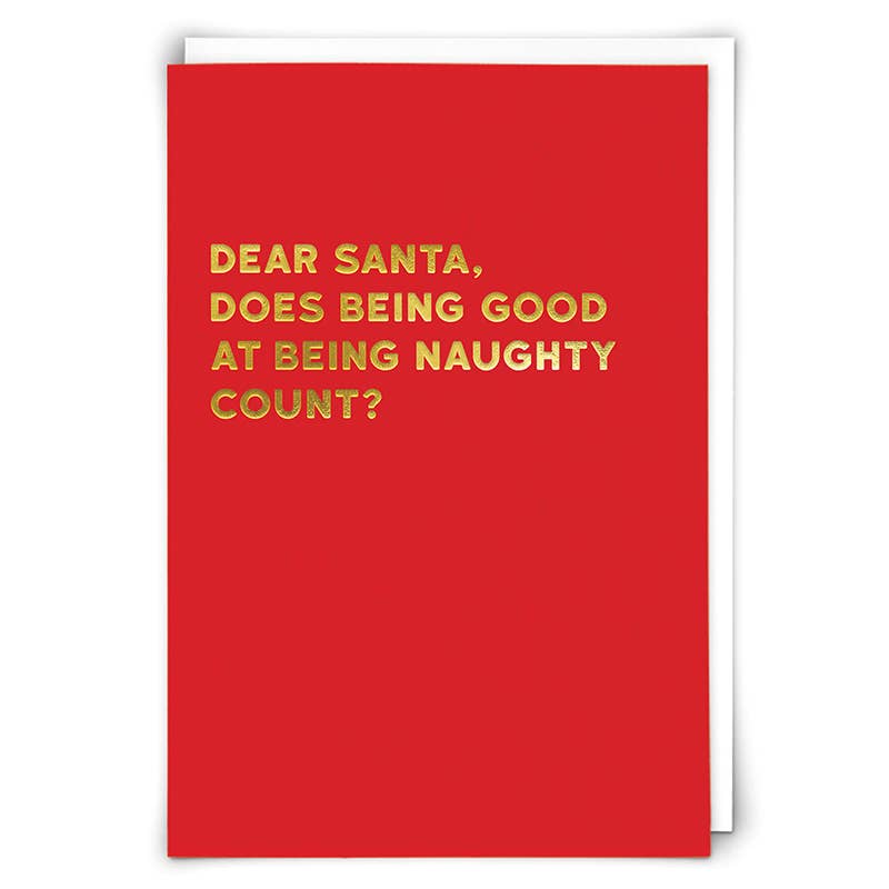 « Vilain. Sympa. Assez bien. » Carte de Noël Après tout, seul le Père Noël sait si tu as été méchant ou gentil ! Noël est le moment idéal pour partager un message insolent avec ceux qui vous connaissent le mieux. Intérieur blanc vierge, prêt pour votre propre message unique. Imprimé sur du papier durable de qualité supérieure certifié FSC. Enveloppe rouge Jupiter chatoyante de qualité supérieure assortie incluse. Emballé dans une pochette en acétate transparent.