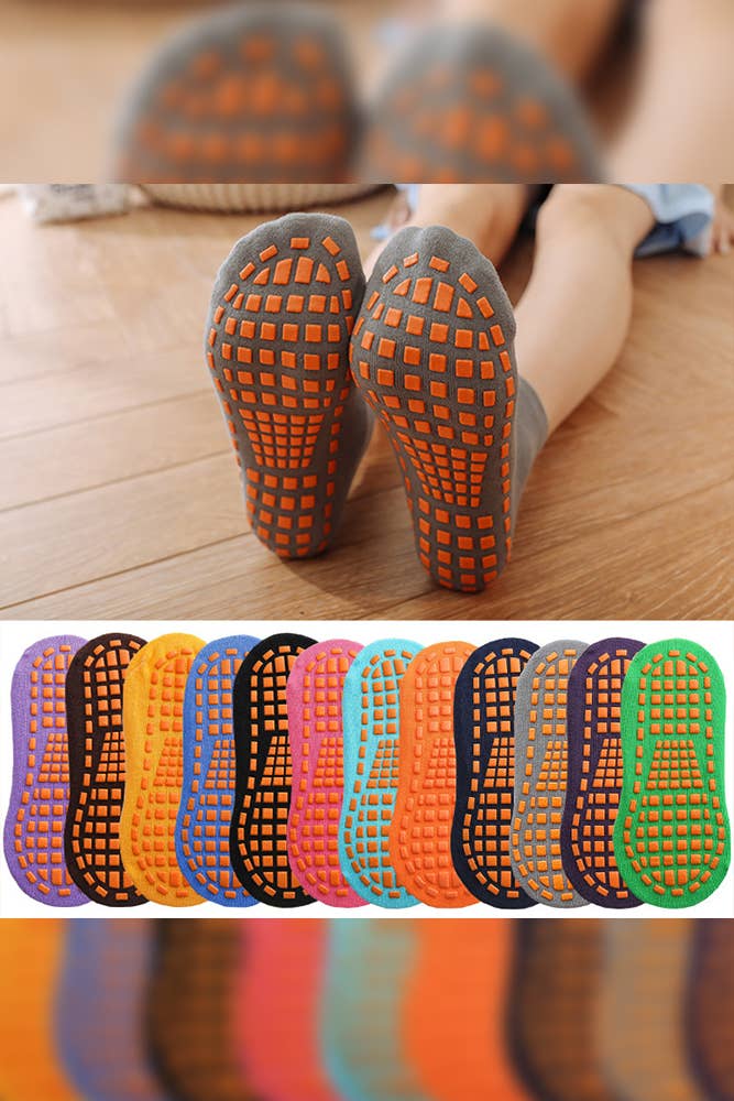 Chaussettes adhérentes classiques noir sur noir ! Ces chaussettes antidérapantes sont parfaites pour vous motiver pendant toutes vos séances de fitness, que ce soit barre, pilates, yoga, lagree fitness ou simplement tout au long de la journée ! Elles possèdent des grips allant des orteils aux talons pour vous assurer de ne pas glisser. Bon entraînement ! Détails super sympas : ~ Grip super adhérent ~ Soutien élastique de la voûte plantaire ~ Semelle rembourrée pour un confort supplémentaire ~ Taille unique ~ Lavable en machine. Séchage à l'air. {Ce n’est pas la fin du monde si vous les mettez au sèche-linge, mais elles dureront moins longtemps si elles ne sont pas traitées avec un peu de soin ! Notre astuce : séchage à l'air puis passage 2 minutes au sèche-linge pour une sensation douce et fraîche comme sortie du linge sèche-linge !} ~ 80 % coton, 20 % polyester