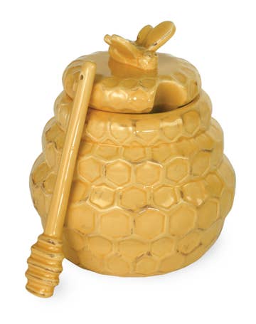 * Notre pot de miel d'abeille est une façon adorable et créative de servir du miel à vos amis et à votre famille. Ce récipient en verre découpé et soufflé à la main a la forme d'une ruche et est livré avec une cuillère de service en bois. Vos invités adoreront le charme de cette magnifique pièce sur votre table de petit-déjeuner. * Pot à miel et cuillère en bois : une nouveauté pour la table du petit-déjeuner ! Ce charmant pot à miel et cette cuillère ont la forme d'une ruche. Remplissez-le avec les choses les plus sucrées que vous puissiez trouver, que ce soit dans votre jardin ou sur le marché fermier. Ou servez des conserves et des confitures. Un cadeau parfait pour les apiculteurs comme pour les amateurs de miel ! * Faites vibrer votre table avec ce pot à miel en forme de ruche et cette jolie petite cuillère en bois !