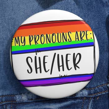 Interrogez-moi à propos de mes pronoms Rainbow Button en vente B2B
