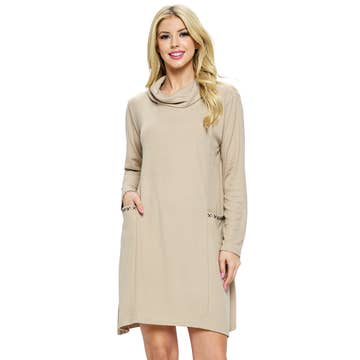 ROBE UNIE À COL ROND AVEC BOUTON À LA TAILLE ET POCHE EN VENTE B2B