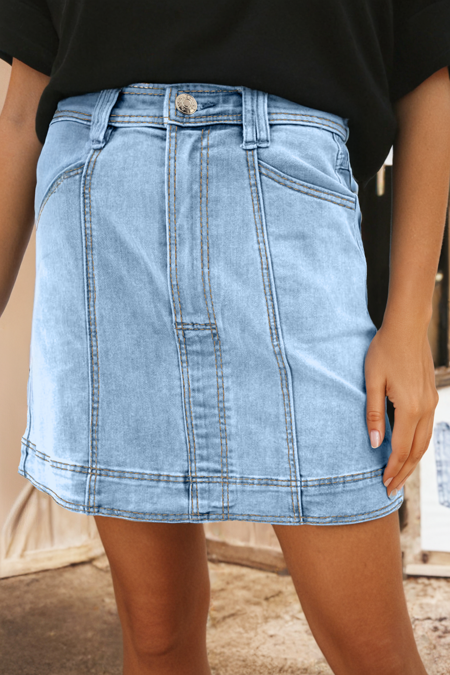 Mini-jupe portefeuille taille haute en denim en vente B2B