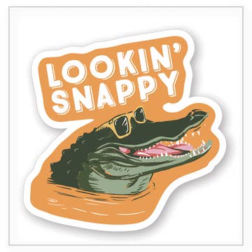 Autocollant mignon d'alligator rose et vert 🐊 Croc-croc ! • Autocollant en vinyle de 2,5 pouces x 2,5 pouces • Matériau vaporwave (éclat doux sur le corps de l'alligator) • Durable, protégé contre les UV, résistant à l'eau et au lave-vaisselle, et longue durée • Conçu et imprimé à Portland, Oregon