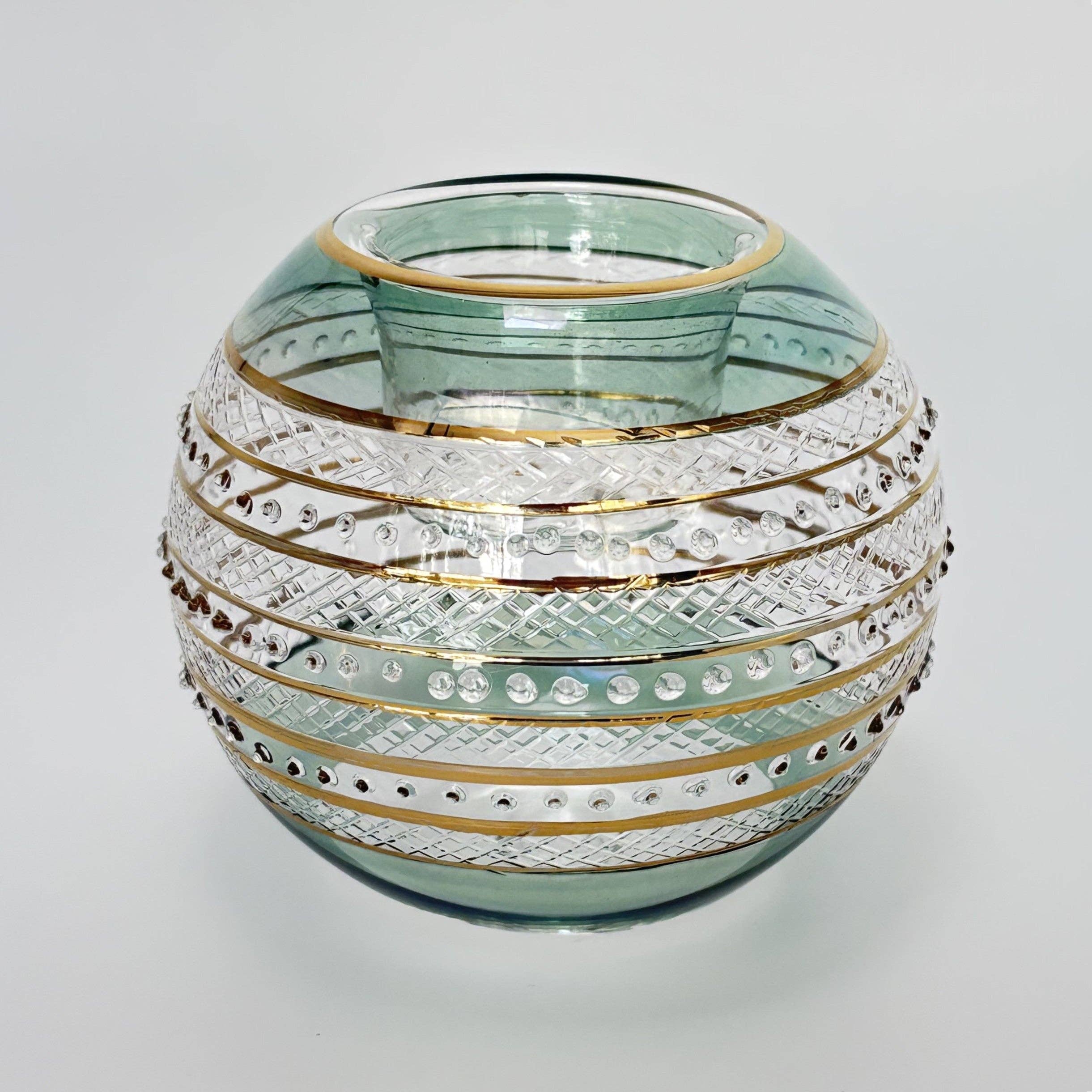 Créez une ambiance chaleureuse et ajoutez un style distinct à votre maison avec ce photophore en verre soufflé à la main. Créé artistiquement par des souffleurs de verre qualifiés au cœur du vieux Caire, en Égypte. L'art du soufflage de verre a commencé en Égypte au moins au 3ème siècle après J.-C. - Les produits de décoration intérieure de Dandarah sont conçus pour être fonctionnels, tout en préservant les techniques traditionnelles des artisans. - Décoré à la main. Peint à la main avec de l'or. - Verre borosilicate. - Accueille une bougie chauffe-plat, non incluse. - Environ 10 cm x 10 cm / 4" x 4". - Comme chaque pièce est faite à la main, la forme et la taille peuvent légèrement varier. - Laver à la main avec une éponge douce. - Fabriqué à la main en Égypte. - Commerce équitable. - Exécution et expédition depuis le Canada.