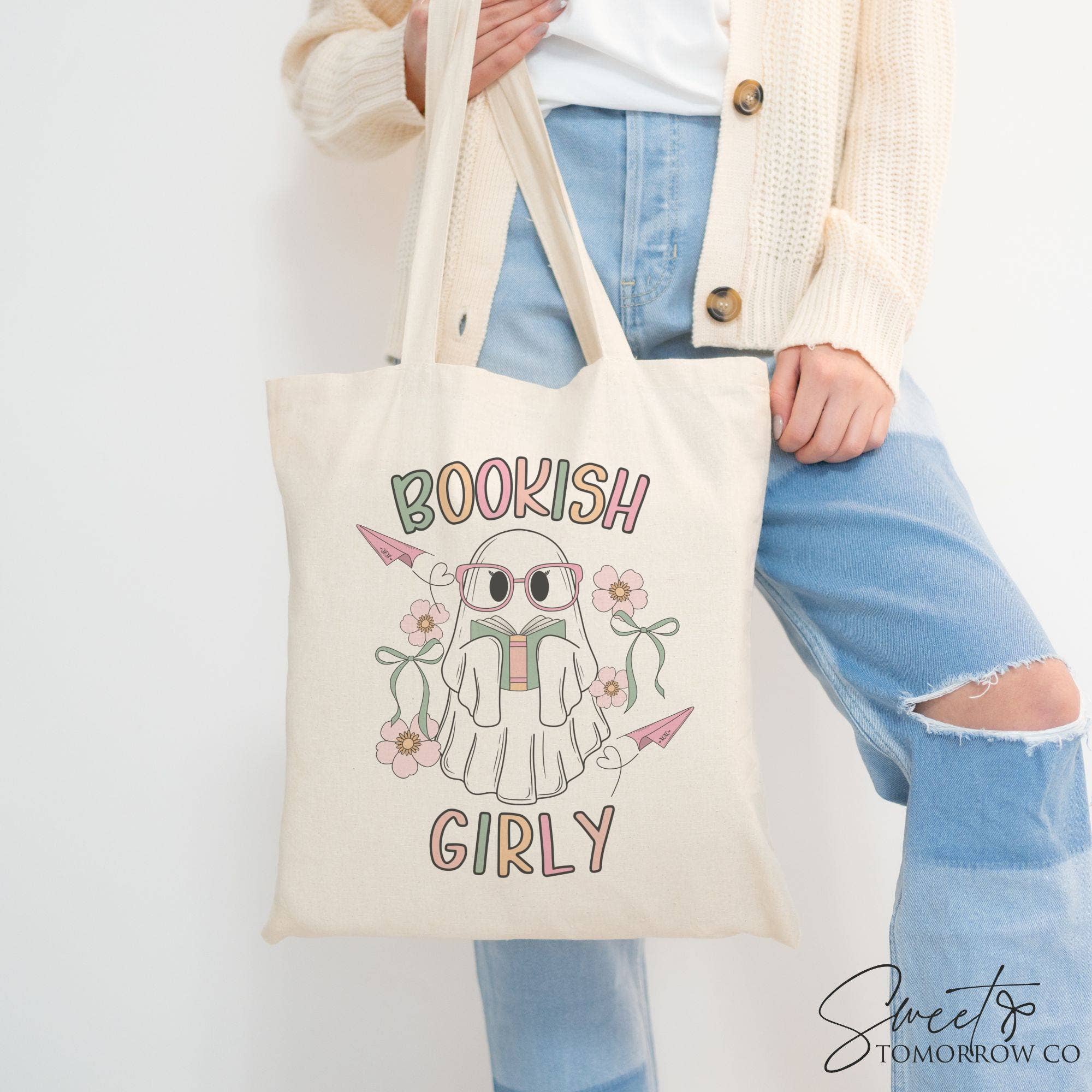 Sac fourre-tout en toile de coton Floral Book Just, sac d'épicerie de taille moyenne