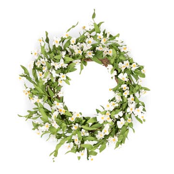 Couronne de marguerites blanche/verte. Taille : 20 pouces Les couleurs peuvent varier.