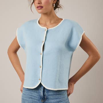 Ce gilet débardeur boutonné est la couche légère parfaite pour l'été. Avec un design moderne et épuré et une silhouette facile à styliser, il ajoute une touche de chic à n'importe quel look, qu'il soit porté seul ou superposé. Un incontournable polyvalent pour les journées chaudes. - Encolure en V - Sans manches - Boutonné - Poches avant - Tricot