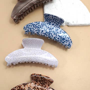 Notre pince à cheveux la plus demandée est enfin disponible ! * Fabriquée en bioacétate, un bioplastique très résistant et écologique (sans pétrole) * Livraison gratuite aux États-Unis pour les commandes de 30 $ et plus, livraison gratuite dans le monde entier pour les commandes de 80 $ et plus * Dimensions : 3 pouces de long x 3 pouces de large * Signature dorée à l'intérieur de la pince * Fièrement conçue en Louisiane et fabriquée en Chine