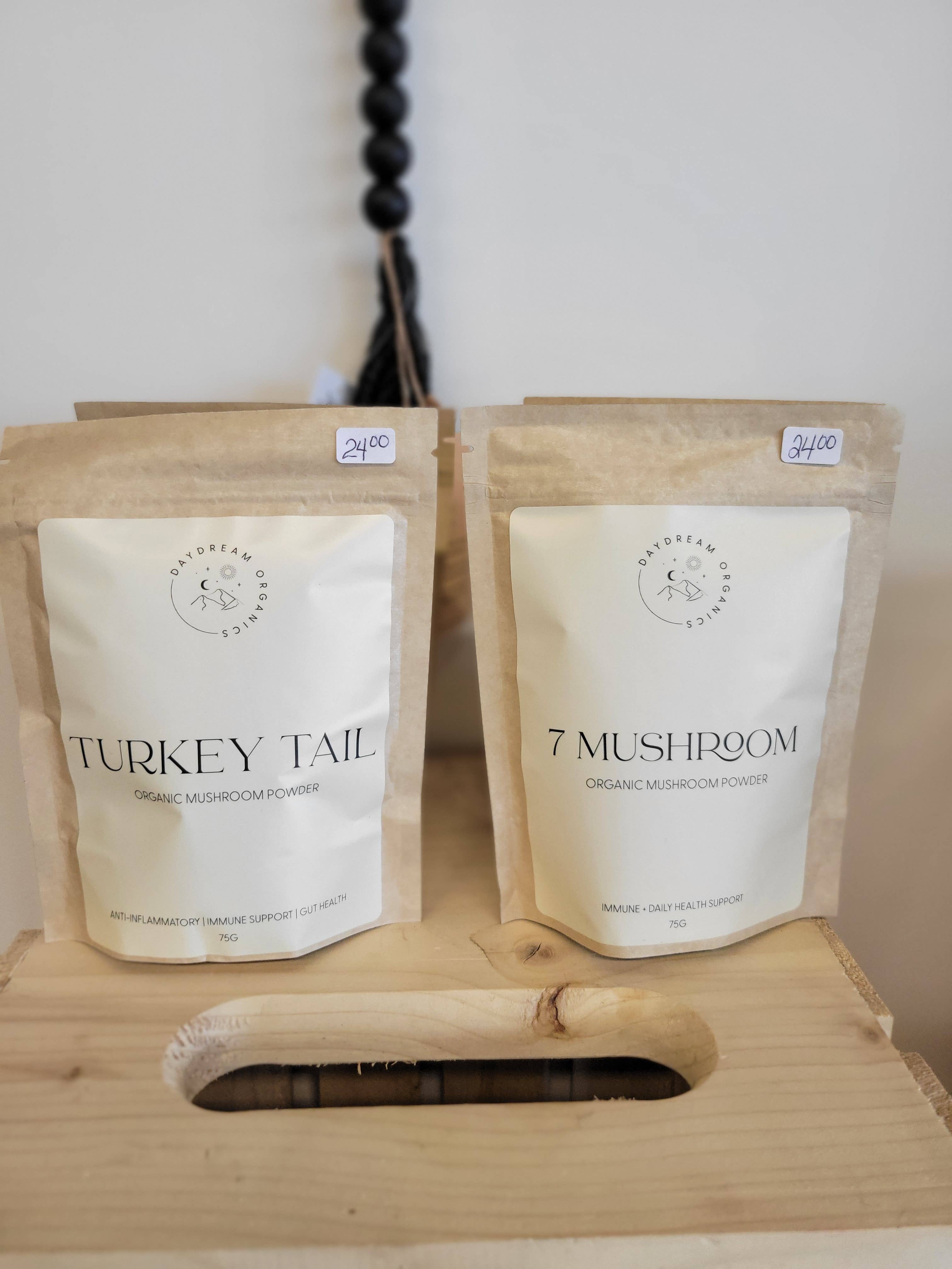 Notre poudre aux 7 champignons est un puissant mélange de fructifications de chaga, de cordyceps, de reishi, de crinière de lion, de queue de dinde, de maitake et de shiitake légèrement cuits à la vapeur. Ce mélange de poudre peut être utilisé comme source de propriétés immunomodulatrices et de polysaccharides fongiques. Notre mélange de 7 poudres de champignons favorise naturellement votre bien-être général ainsi qu'un système immunitaire sain. Comment utiliser : Notre poudre aux 7 champignons se marie bien avec une variété d'aliments et de boissons tels que le café, les smoothies, les élixirs, les vinaigrettes, les soupes, les produits de boulangerie et plus encore !