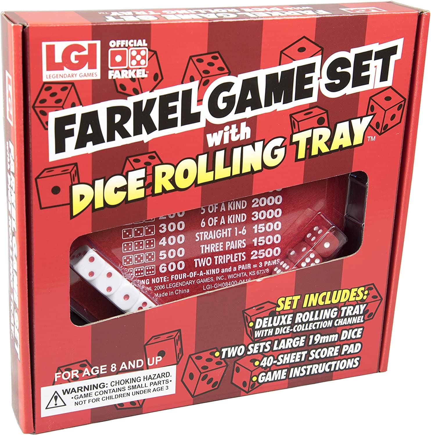 Jeu classique de chance joliment emballé dans une boîte à collectionner avec des dés et des coupes colorés pour plusieurs joueurs. Le couvercle doublé en feutre indique comment marquer et fait office de plateau roulant pour absorber le bruit et garder vos dés sur la table. Blocs de score inclus. Cet ensemble de luxe est idéal pour les fêtes et comme cadeau ! Farkle Deluxe est un excellent jeu de société avec 6 sets de dés et de coupes colorés. Lancez vos dés et essayez de marquer avec un trois points, une maison pleine, une ligne droite et plus encore ! Allez-vous vous en tenir à un lancer modéré ou tenter le destin pour obtenir une combinaison plus gagnante ? Le premier joueur à obtenir 10 000 points gagne. Cet ensemble comprend six ensembles de dés et de gobelets et un plateau à roulettes.