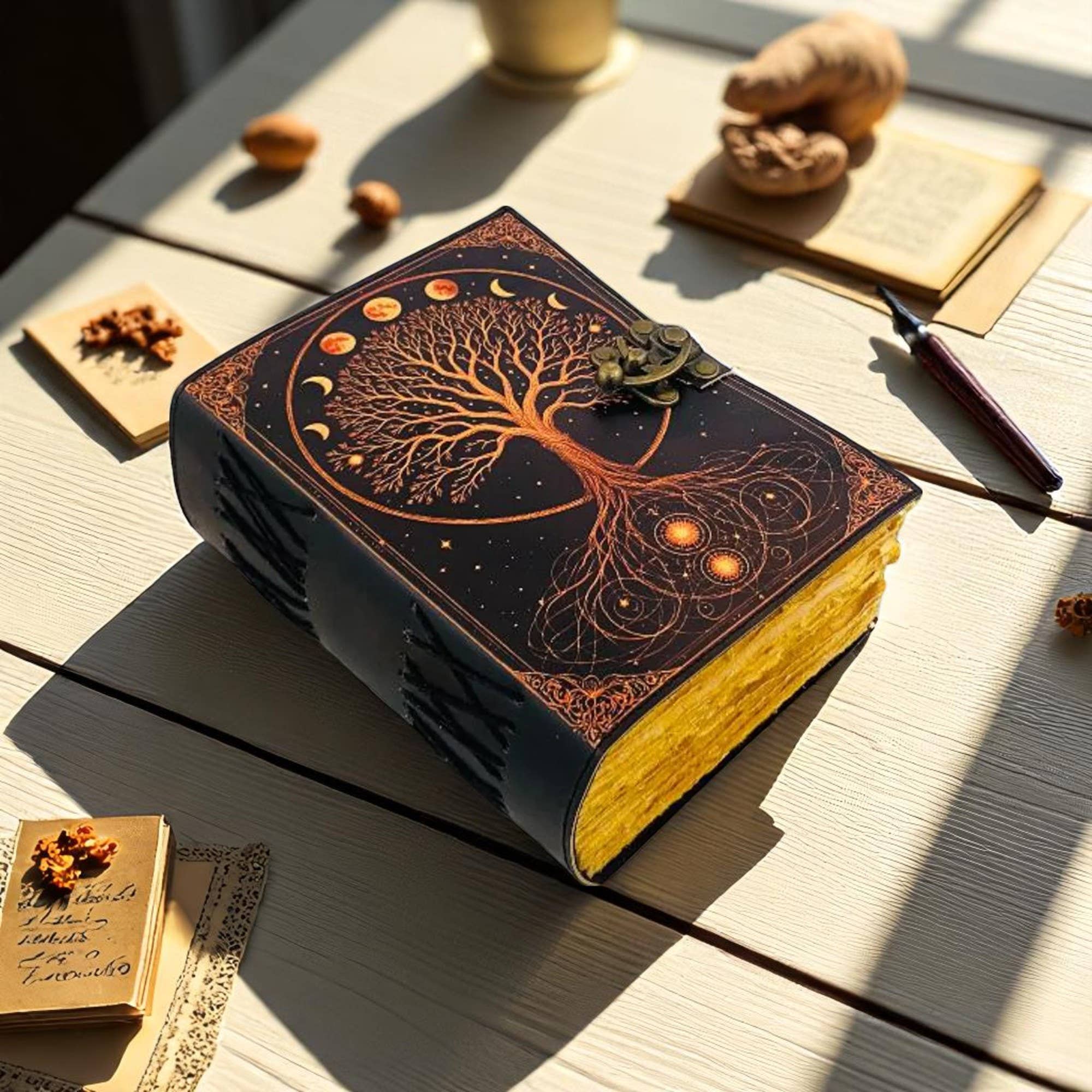 Découvrez la magie de l'écriture avec le journal Vintage Fox Leather Celtic Grimoire de Billion Brothers. Fabriqué à la main en cuir de chèvre 100 % véritable, ce carnet de format A5 (13 x 18 cm) présente une texture riche et un parfum naturel qui rappellent le charme de l'ancien temps. Ses 220 pages (110 feuilles) de papier brun rustique non lignées sont parfaites pour écrire, dessiner, pratiquer des sorts ou laisser libre cours à votre créativité. La reliure copte cousue à la main ajoute un caractère vintage tout en fixant chaque page avec soin. Chaque journal est unique grâce aux variations naturelles de couleur et de grain, ce qui en fait un cadeau précieux pour les écrivains, artistes ou chercheurs spirituels. Léger et compact, ce carnet de voyage rechargeable allie beauté et fonctionnalité, vous permettant d'emporter vos pensées partout. Choisissez Billion Brothers pour la qualité, l'artisanat et le style.