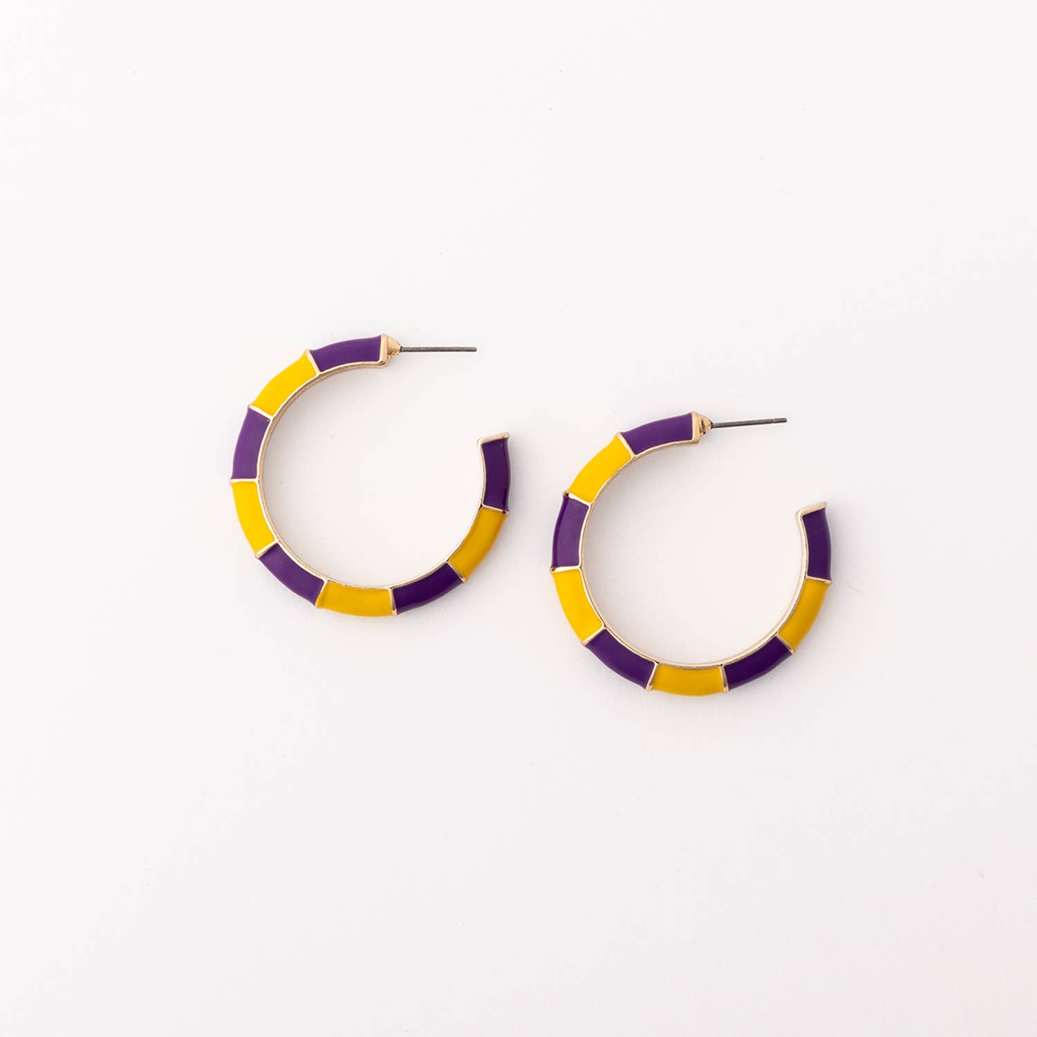 Faites une déclaration avec ces boucles d'oreilles géométriques accrocheuses, parfaites pour les célébrations du Mardi Gras ou toute occasion festive. Disponibles en violet, vert et or vibrants, ces créoles scintillantes apportent une touche de couleur audacieuse à votre look. Si vous recherchez un style plus subtil mais glamour, optez pour la version élégante en noir et or. Conçues pour le confort et la durabilité, ces boucles d'oreilles sont légères et sécurisées pour un port toute la journée. Que vous vous rendiez à une fête ou ajoutiez de l'éclat à votre tenue quotidienne, ces boucles d'oreilles sont un accessoire indispensable. Matériau - Émail Taille - Environ 5 cm