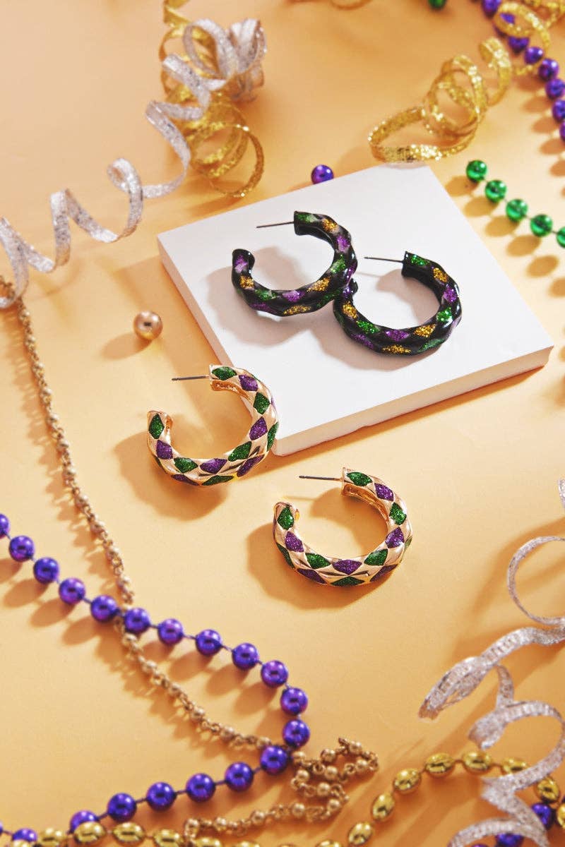 Boucles d'oreilles créoles pailletées style bambou Mardi Gras en vente B2B