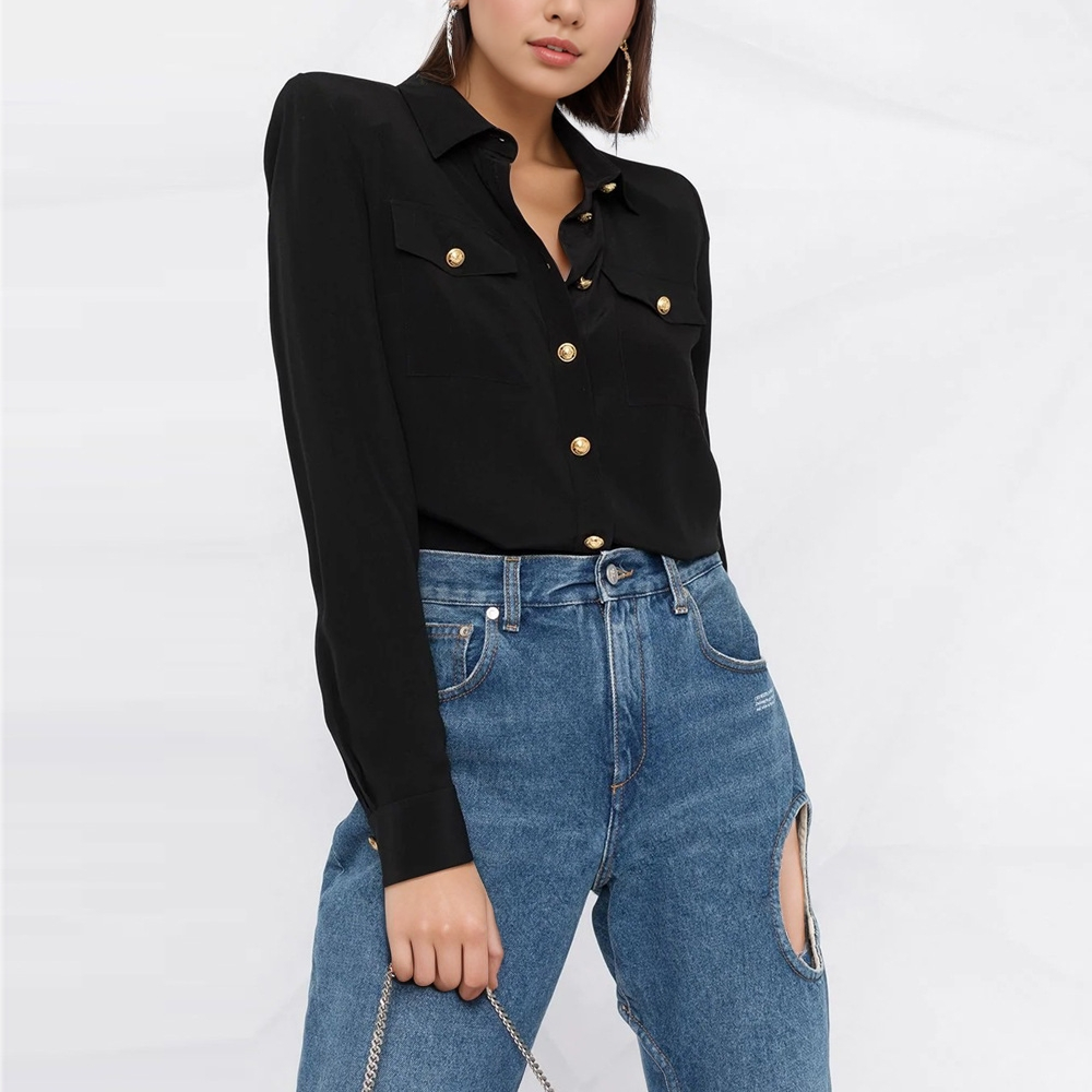 Élevez votre garde-robe avec cette blouse éblouissante faite à la main, ornée de rayures verticales audacieuses en noir, blanc et rouge, chacune enrichie de strass chatoyants aux couleurs vives. L'agencement complexe de gemmes rectangulaires et ovales ajoute une texture et une dimension éclatantes, tandis que les manches longues et le col structuré confèrent une silhouette raffinée. Des perles scintillantes tracent les coutures et l'encolure, créant une finition lumineuse qui capte la lumière à chaque mouvement. Parfaite pour les sorties en soirée, les événements en galerie ou pour ajouter du style aux looks de jour, cette blouse allie charme artisanal et élégance moderne.