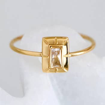 Notre bague Bridgette est ornée d'une superbe pierre marquise qui capte magnifiquement la lumière. Sentez-vous confiante et élégante grâce à son éclat intemporel, parfait pour toutes les grandes occasions. -acier inoxydable, doré