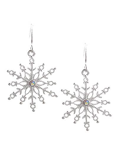 Boucles d'oreilles pendantes en argent sterling en forme de flocon de neige en vente B2B