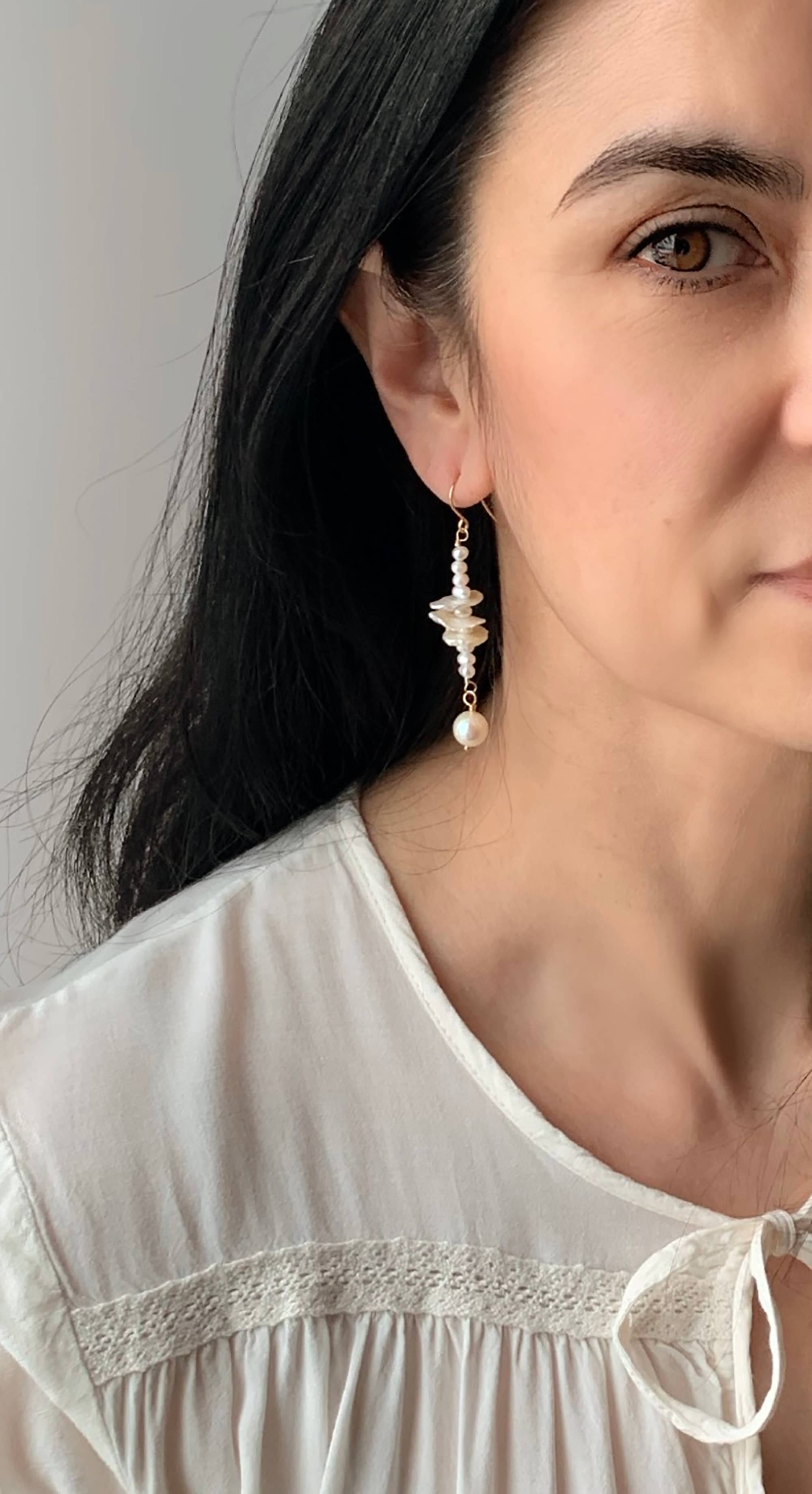 Boucles d'oreilles légères de couleur perle. -rempli d'or 14 carats -Sans nickel -Emballage respectueux de l'environnement *Fabriqué par des survivants. Chaque achat permet aux survivants et investit dans la lutte pour mettre fin à la traite et à l'exploitation des êtres humains.