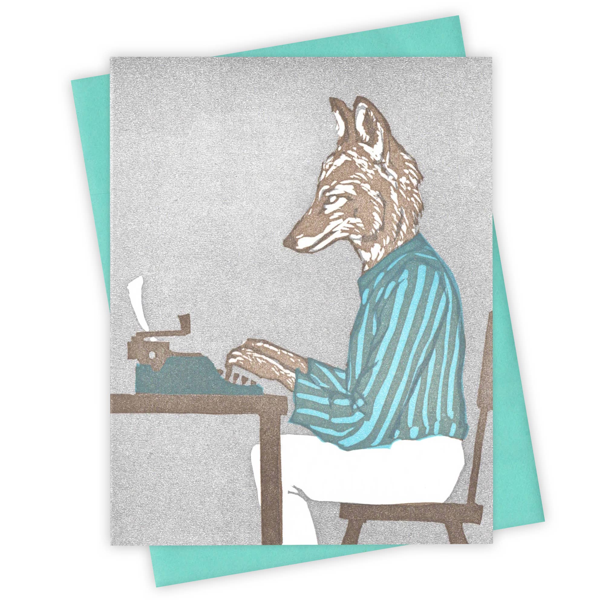 Carte pliée originale imprimée au bloc sur papier 100 % coton représentant un coyote assis dans une chaise de jardin orange et se relaxant après le travail. Recto de la carte : 4,25 po x 5,5 po, intérieur : vierge, comprend une enveloppe A2 French Paper Company. Nous emballons chaque carte dans une pochette transparente avec une étiquette dans le bas du dos. Les cartes Burdock & Bramble sont des impressions au bloc sculptées à la main, imprimées en typographie à Boiling Springs, PA.