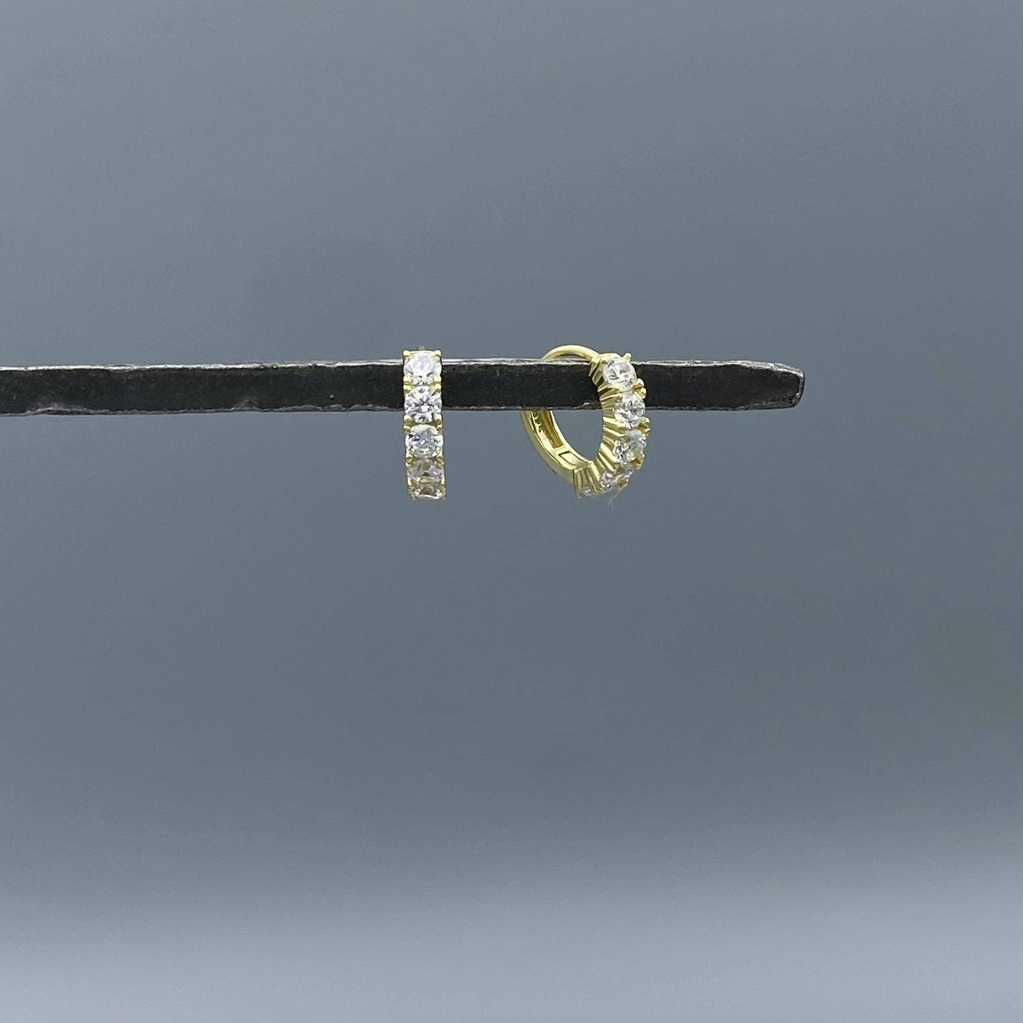 Boucles d'oreilles Sparkle Pave Huggie Hoops en argent et or blanc