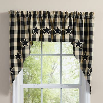 Présentation du Swag Kendall Jacquard Rouge 72" x 36", un mélange parfait d'élégance et de charme rustique pour votre décoration intérieure. Cet ensemble comprend deux swags magnifiquement conçus, chacun arborant un riche motif jacquard dans des teintes frappantes de rouge, noir et avoine. Conçus pour compléter les intérieurs de style primitif et campagnard, ces swags ajoutent une touche de chaleur et de sophistication à n'importe quelle pièce. Le tissu de haute qualité assure durabilité et sensation luxueuse, les rendant idéaux pour un usage quotidien. Faciles à installer et à entretenir, ces swags sont un ajout polyvalent à vos traitements de fenêtre, rehaussant l'ambiance avec leur attrait intemporel. Transformez votre espace de vie avec le Swag Kendall Jacquard Rouge et profitez de l'équilibre parfait entre style et confort.
