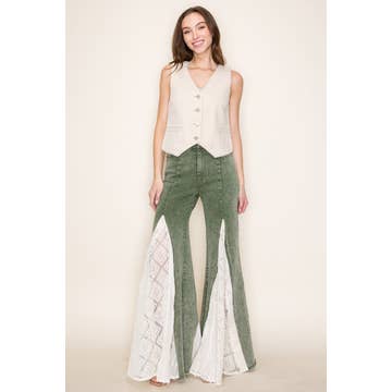 Pantalon en denim à cordon de serrage avec empiècement floral en vente B2B