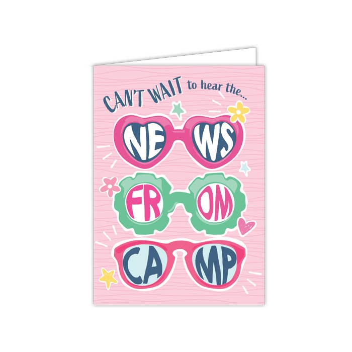 Cette carte de vœux convient à tous les campeurs ! Il comprend une recherche de mots sur le thème des bonbons et le message d'accueil « J'ai hâte d'en entendre parler ! » Emballé dans un sac en cellophane transparent avec une enveloppe auto-scellante. Imprimé aux États-Unis