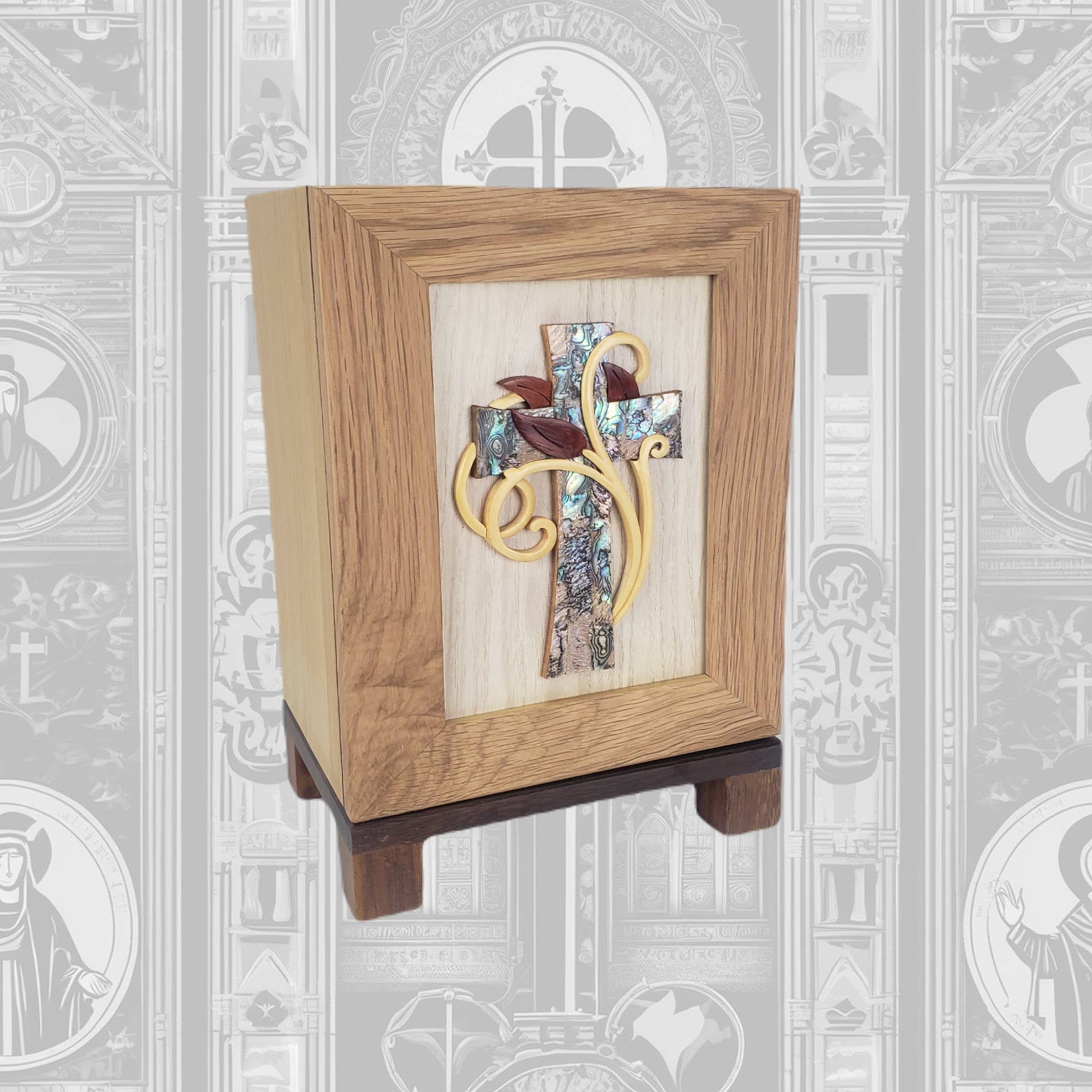 Bar en bois, urne en bois - Urne en bois et coquille d'ormeau faite à la main • Dimensions : 8" L x 5,75" P x 11" H (la hauteur inclut la base) • Capacité : 260 po³. La section supérieure en chêne met en valeur le bar, complétée par des pieds en acajou massif, ce qui en fait un choix idéal pour tout décor. Cette urne présente un magnifique bar fait à la main avec des accents de coquille d'ormeau. L'urne est équipée de cinq vis situées au bas pour accéder à l'intérieur. Avertissement sur le bois : Étant donné que le bois est un produit naturel, des variations de couleur et de grain sont à prévoir. Certaines essences de bois ont des caractéristiques de grain uniques qui peuvent rendre la finition finale plus foncée ou plus claire dans certaines zones. Nous ne pouvons pas accepter de retours en raison de variations naturelles.