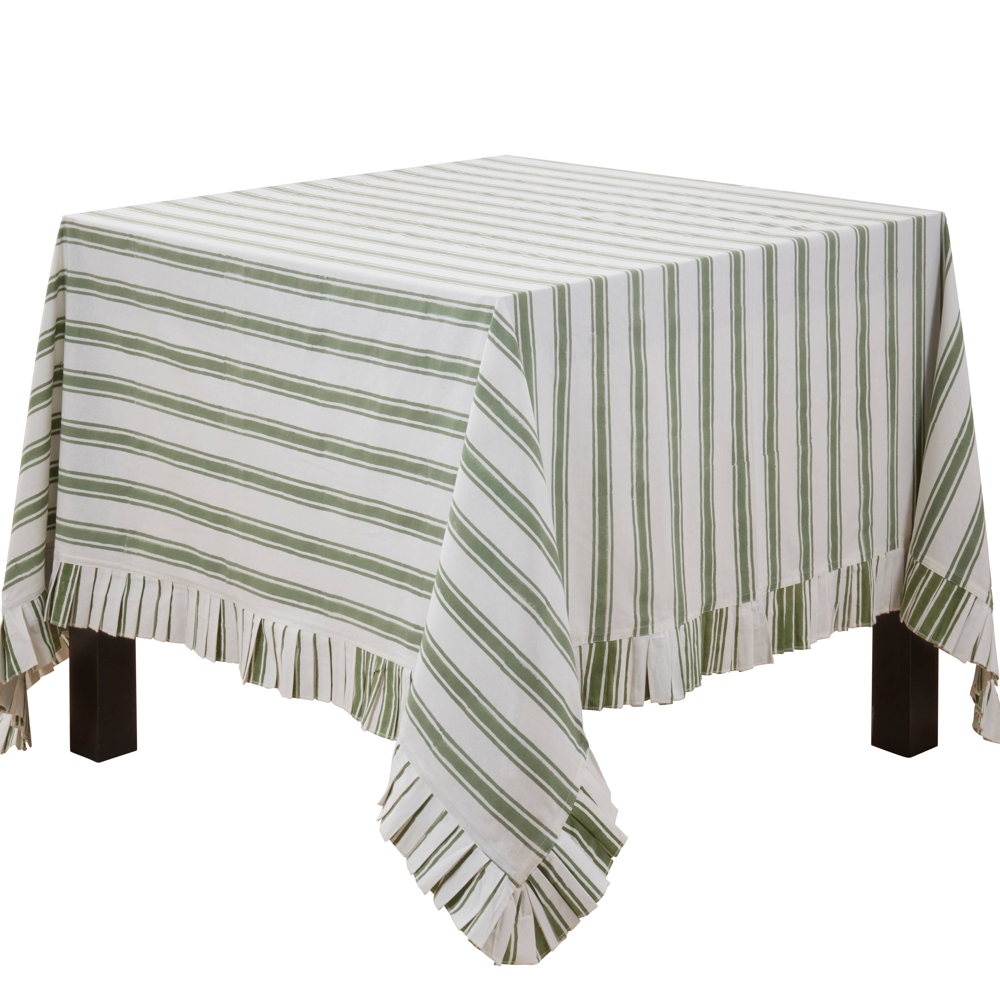 Une nappe à rayures élégante typique du Pays basque français. Elle est ravissante à l'extérieur ou dans une belle cuisine. Ces nappes sont en 100 % coton et ensuite enduites pour les garder sans taches. Le beau coton enduit ajoute une touche élégante. Ces nappes sont sans taches, il suffit de les essuyer avec un essuie-tout. Elles sont disponibles en carré de 64×64 pouces, ce qui convient à une table carrée, ronde ou rectangulaire en diagonale. 100 % coton enduit. Fabriqué en France. Lavage en machine à froid sans essorage, suspendre pour sécher. Ne peut pas être mis au sèche-linge.