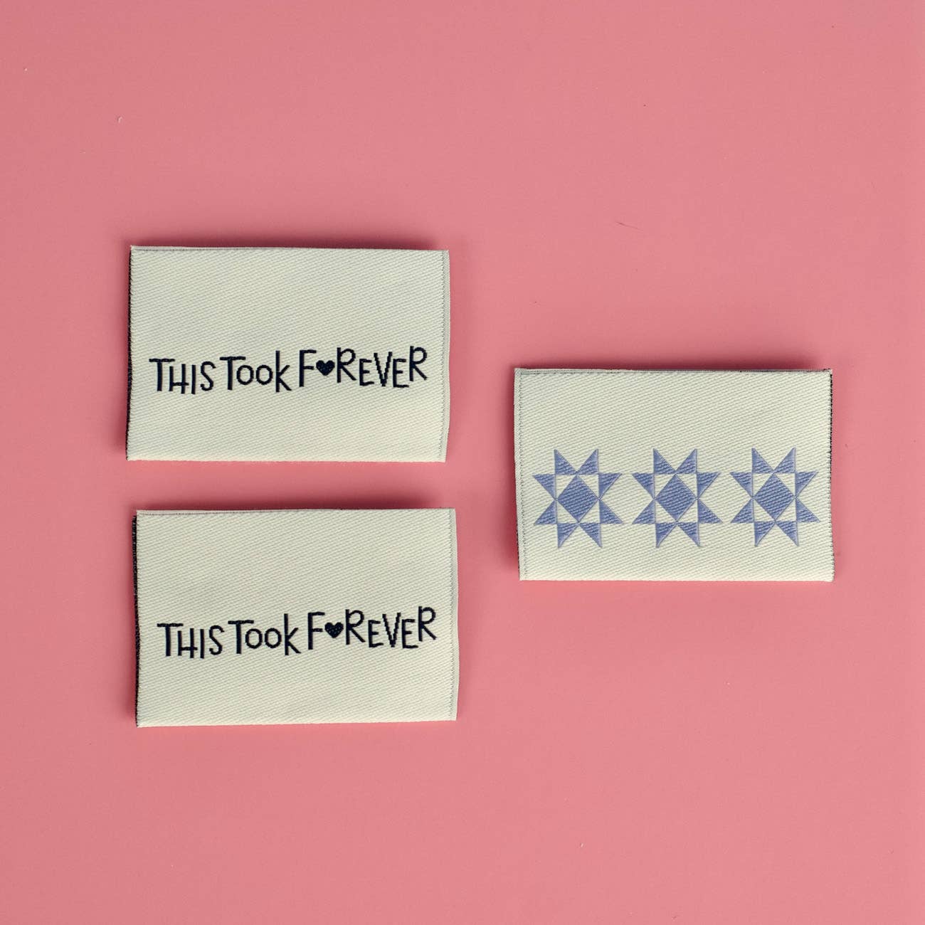 Étiquettes tissées « Good Things Take Time » pour couture et patchwork en vente B2B