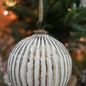 Des flocons de verre doré scintillants incrustent des sphères de verre pour ajouter une dose supplémentaire de brillance à votre sapin.