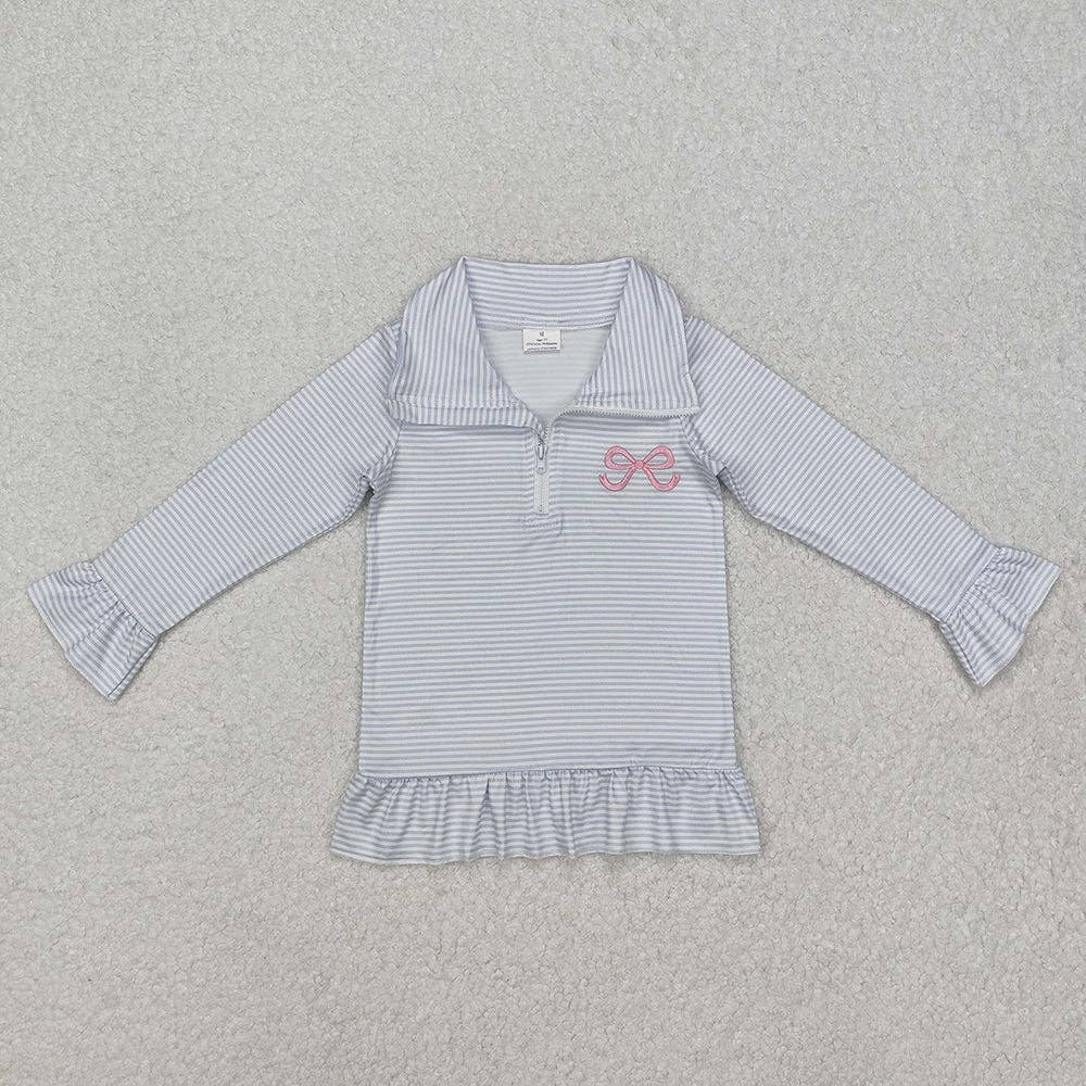 Pulls à fermeture éclair à manches longues avec nœud bleu pour bébés filles en vente B2B
