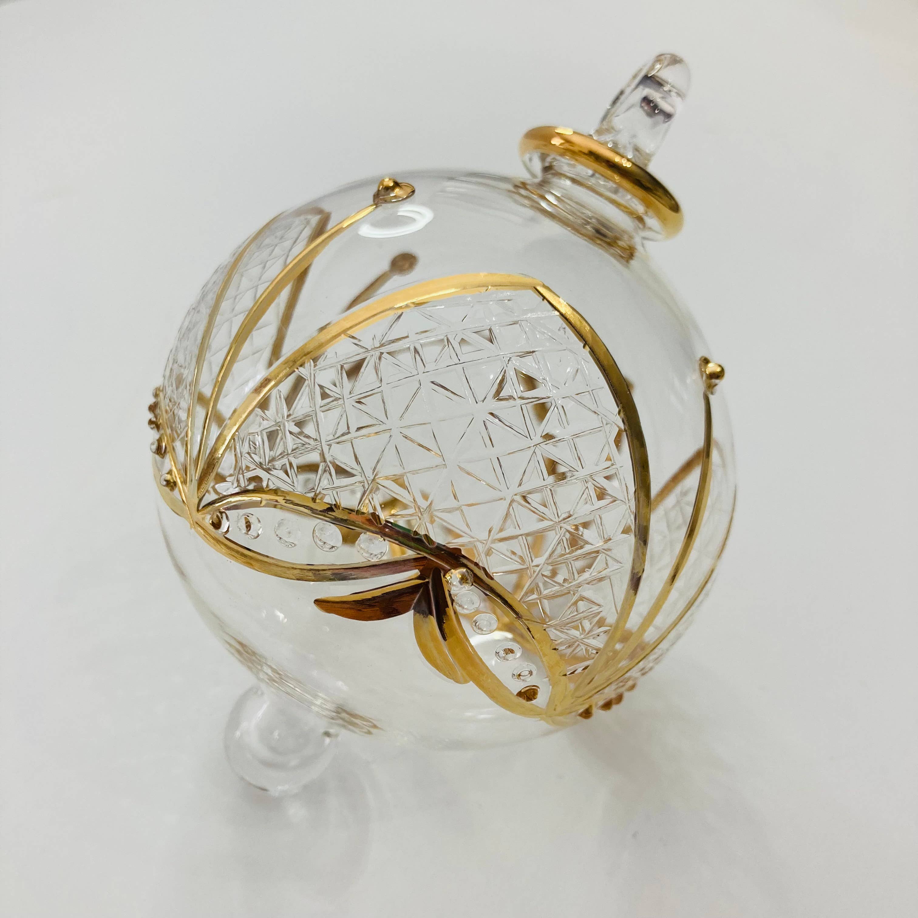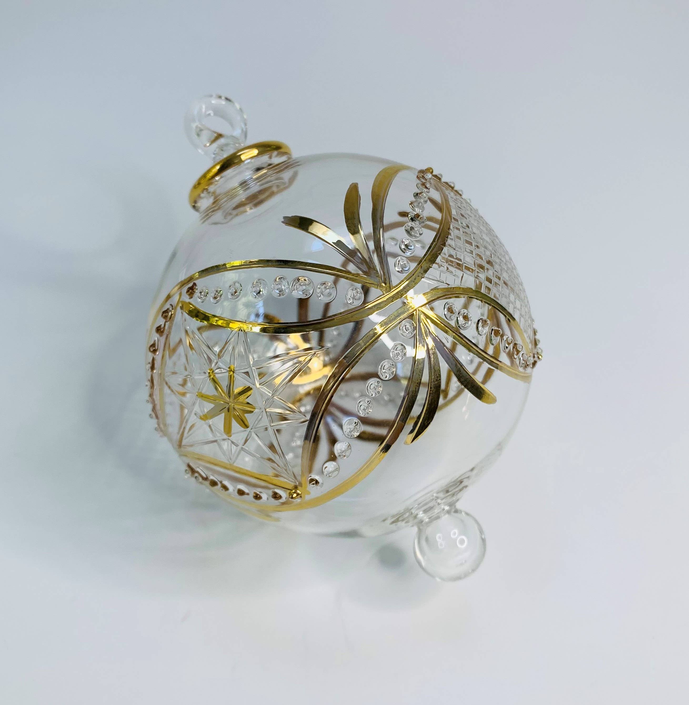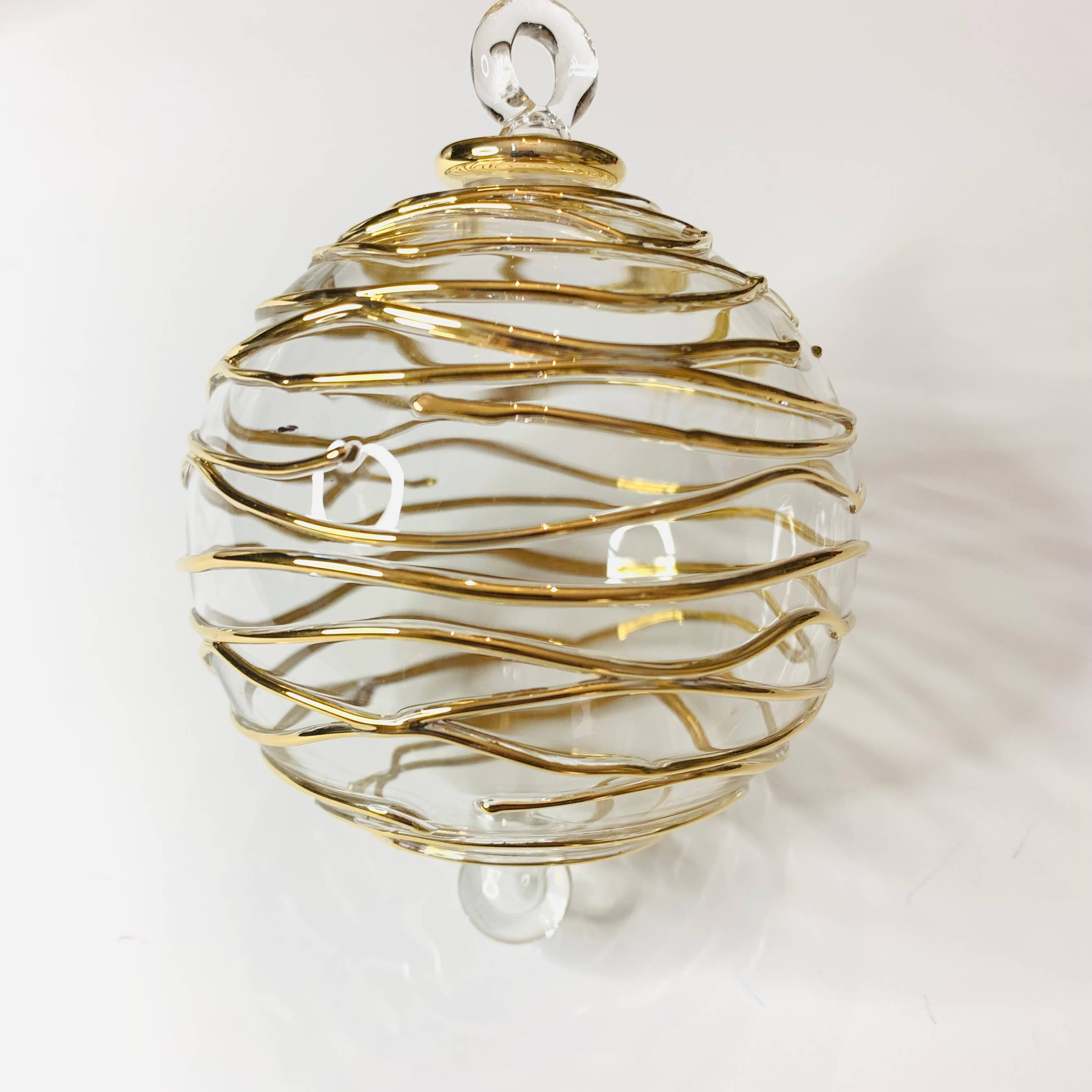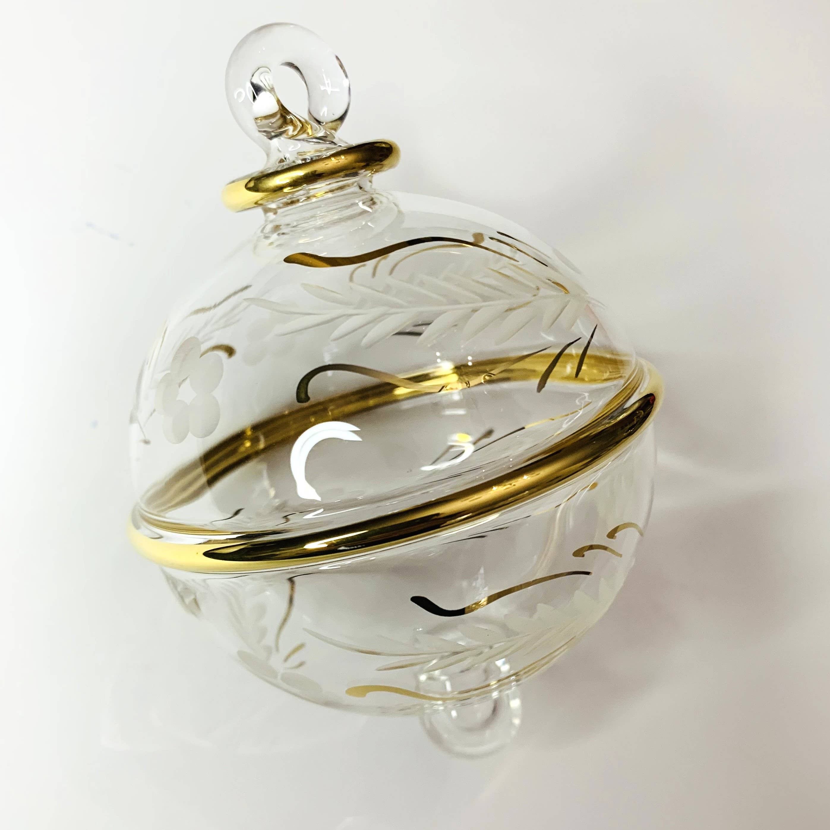 Ajoutez une touche de beauté avec cet ornement en verre soufflé fait main de qualité héritage ; comme décoration intérieure, décoration de Noël, et bien plus encore. Créé artistiquement par des souffleurs de verre qualifiés au cœur du vieux Caire, en Égypte. L'art du soufflage de verre a commencé en Égypte au moins au IIIe siècle après J.-C., selon un poème écrit sur papyrus qui décrit la technique. - Les produits en verre soufflé de Dandarah sont conçus pour être fonctionnels, tout en préservant les techniques traditionnelles des artisans. - Commerce équitable. - Décoré à la main. Peint à la main avec de l'or. - Verre borosilicate. - Environ 8,5 cm de diamètre. - En raison de la nature du verre soufflé à la main, la taille peut légèrement varier d'une pièce à l'autre. - Exécution et expédition depuis le Canada.