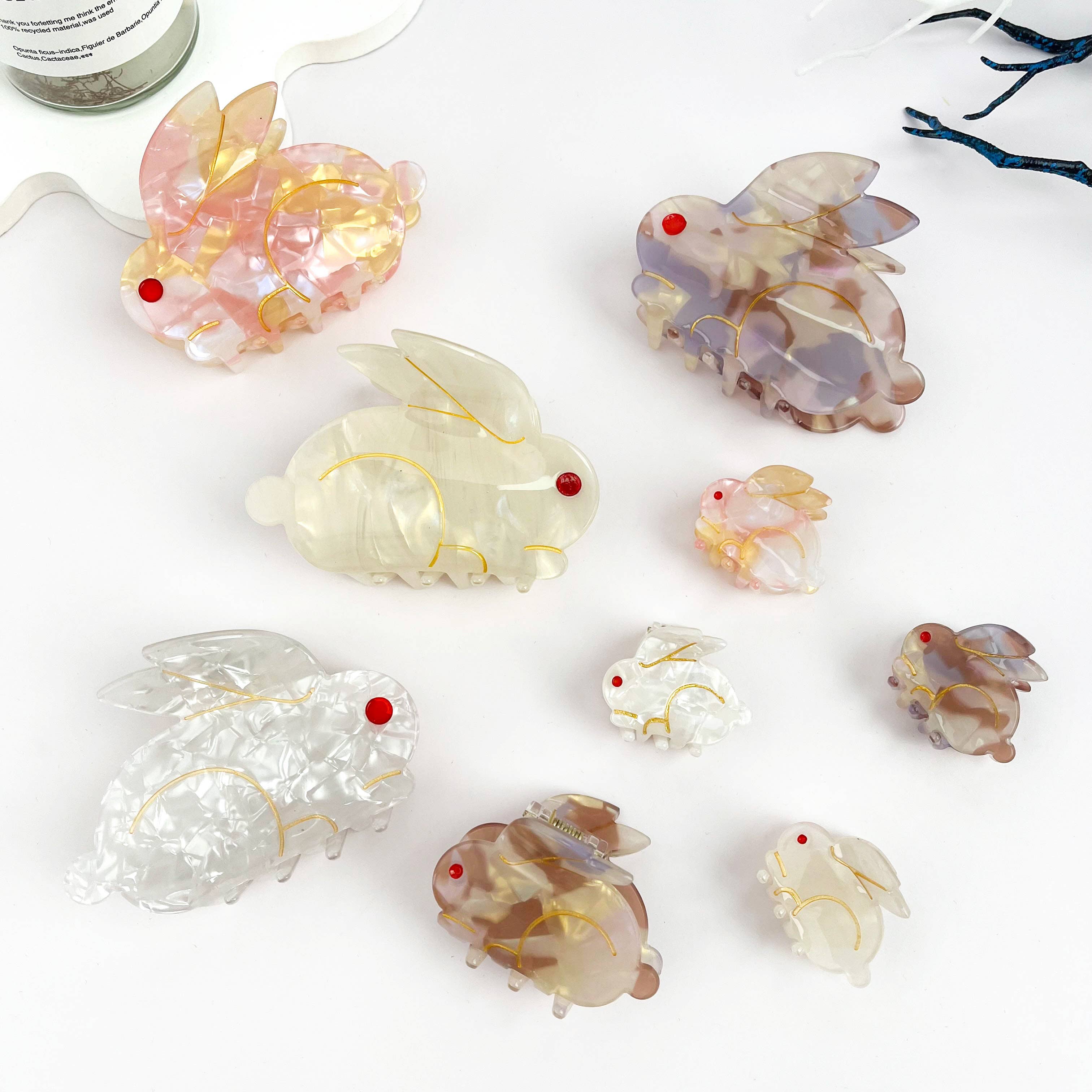 🌿 Matériau : PVC 📏 Taille et Poids : 8,1 cm, 25 g 💖 Caractéristiques du design : Ajoutez une touche de fantaisie douce à votre coiffure avec ces pinces à cheveux en forme de lapin de dessin animé. Arborant des designs de lapins adorables dans des teintes pastel douces avec des finitions brillantes et marbrées, chaque pince allie charme mignon et esthétique ludique. Parfait pour quiconque souhaite insuffler à son look une dose de flair innocent inspiré des animaux—idéal pour un usage quotidien ou pour ajouter une touche amusante aux styles décontractés. 🎨 Occasions appropriées : Parfait pour un usage quotidien, le travail, les fêtes, les sorties décontractées, ou comme cadeau attentionné pour les amis et les proches. 📦 Emballage : Emballage par défaut à pièce unique