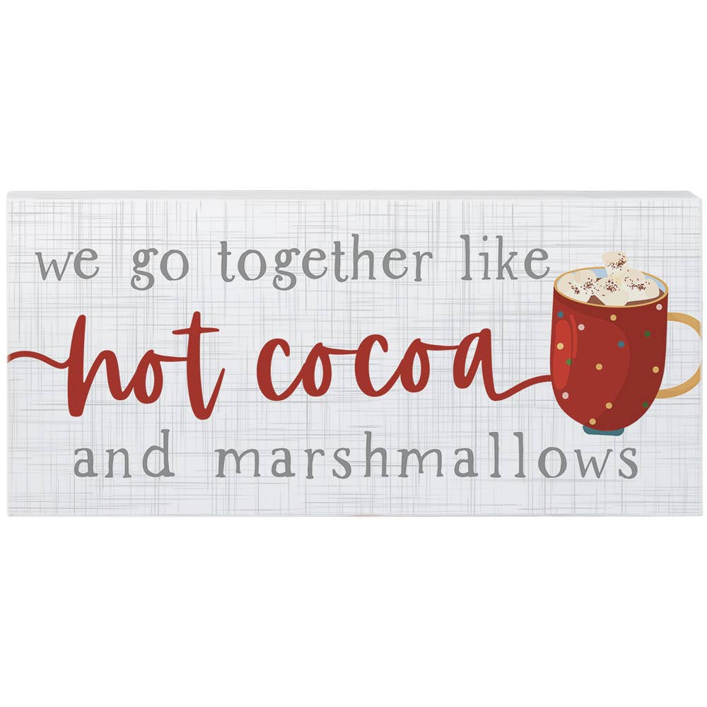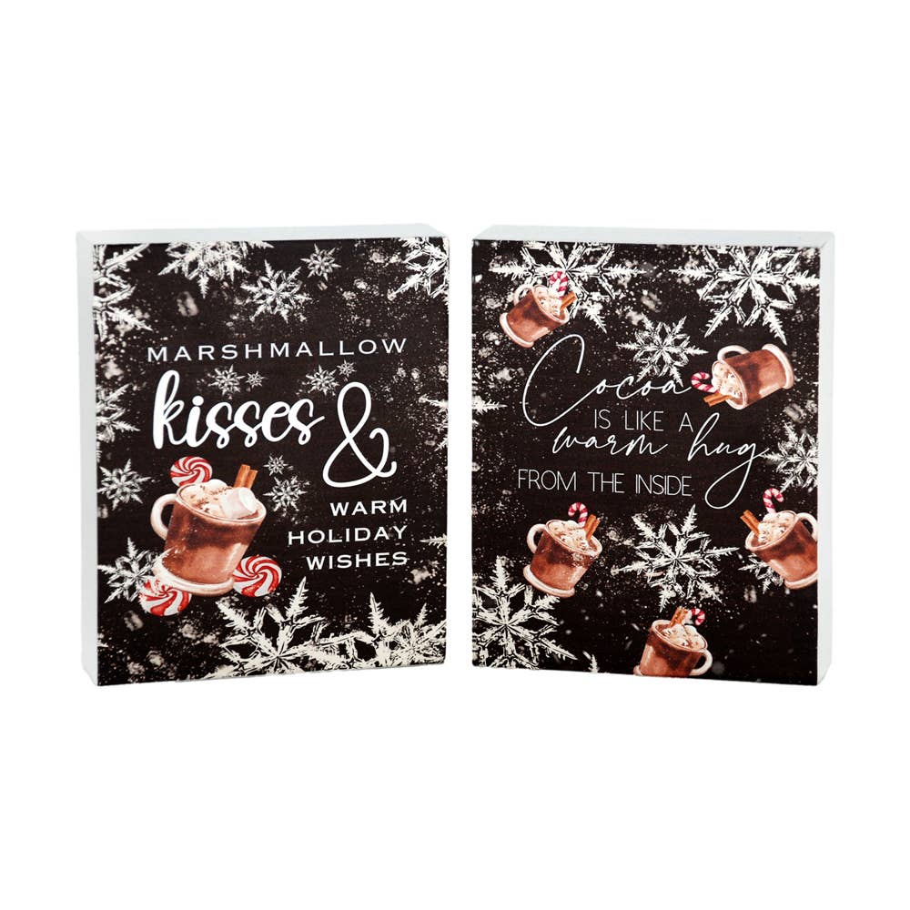 Ajoutez une tasse de chaleur hivernale aux présentoirs de ferme avec le set Hot Cocoa Bar Blocks. Comprenant trois plaques de siège en bois, cet ensemble présente une palette de couleurs rouge vif et blanc avec des bords vieillis. Un bloc mesure 2,5 pouces de haut sur 3 pouces de large et indique « bonne humeur » en texte rouge et en script sur fond blanc. Le design comporte un cadre à trois lignes et un joli flocon de neige dans un coin. Le deuxième bloc est découpé en forme de tasse et présente une finition rouge avec une inscription blanche et un texte indiquant « bisous au cacao chaud et à la guimauve ». Il mesure 2,5 pouces de haut sur 3 pouces de large. Le plus grand bloc mesure 2 pouces de haut et 6,5 pouces de large avec une finition blanche et un texte rouge indiquant « Hot Cocoa Bar » avec un cadre rouge. Tous les blocs ont une profondeur de 0,75 pouces pour un affichage autoportant robuste. Affichez cet ensemble ensemble ou répartissez-le sur plusieurs écrans. Les blocs sont magnifiques avec des ingrédients servant à la fabrication du cacao, de la menthe poivrée ou des fleurs de fruits rouges.