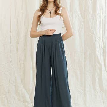 Ciel bleu | Pantalon large taille haute Intemporel et sophistiqué, ce pantalon taille haute présente une coupe flatteuse qui allonge les jambes et définit la taille. Conçu pour le confort et le style, il offre une silhouette polyvalente parfaite pour les journées de travail ou pour s'habiller lors d'occasions spéciales. À associer avec des blouses ou des hauts ajustés pour un look soigné. Le mannequin mesure : Taille : 1,74 m Buste : 81 cm Taille : 61 cm Hanche : 86 cm | Le mannequin porte une taille petite