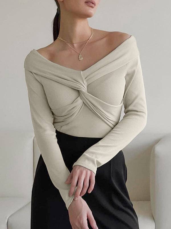 Pull à col en V à manches longues et taille haute de couleur unie, creuses, robes midi en vente B2B