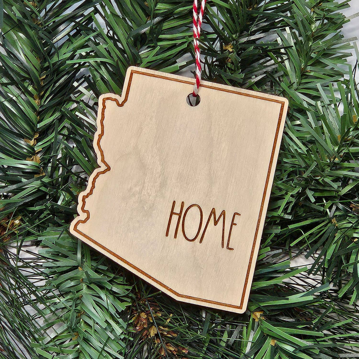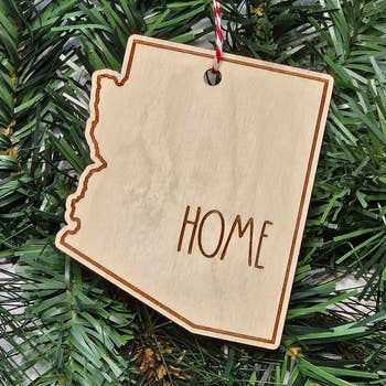 Découvrez le charme de la décoration d'intérieur citoyenne avec notre décoration représentant l'État de l'Arizona. Découpé au laser avec expertise, cet ornement ajoute une touche unique à votre décoration de Noël. Fabriqué en anglais, il met en valeur le talent artistique et le savoir-faire que nous, John et Chelsea Goodson, entretenons depuis 2013. Cet ornement transcende l'ordinaire, offrant un avant-goût de l'Arizona, directement dans votre maison. C'est plus qu'un simple ornement, c'est une pièce de notre cœur, habilement conçue pour vous.