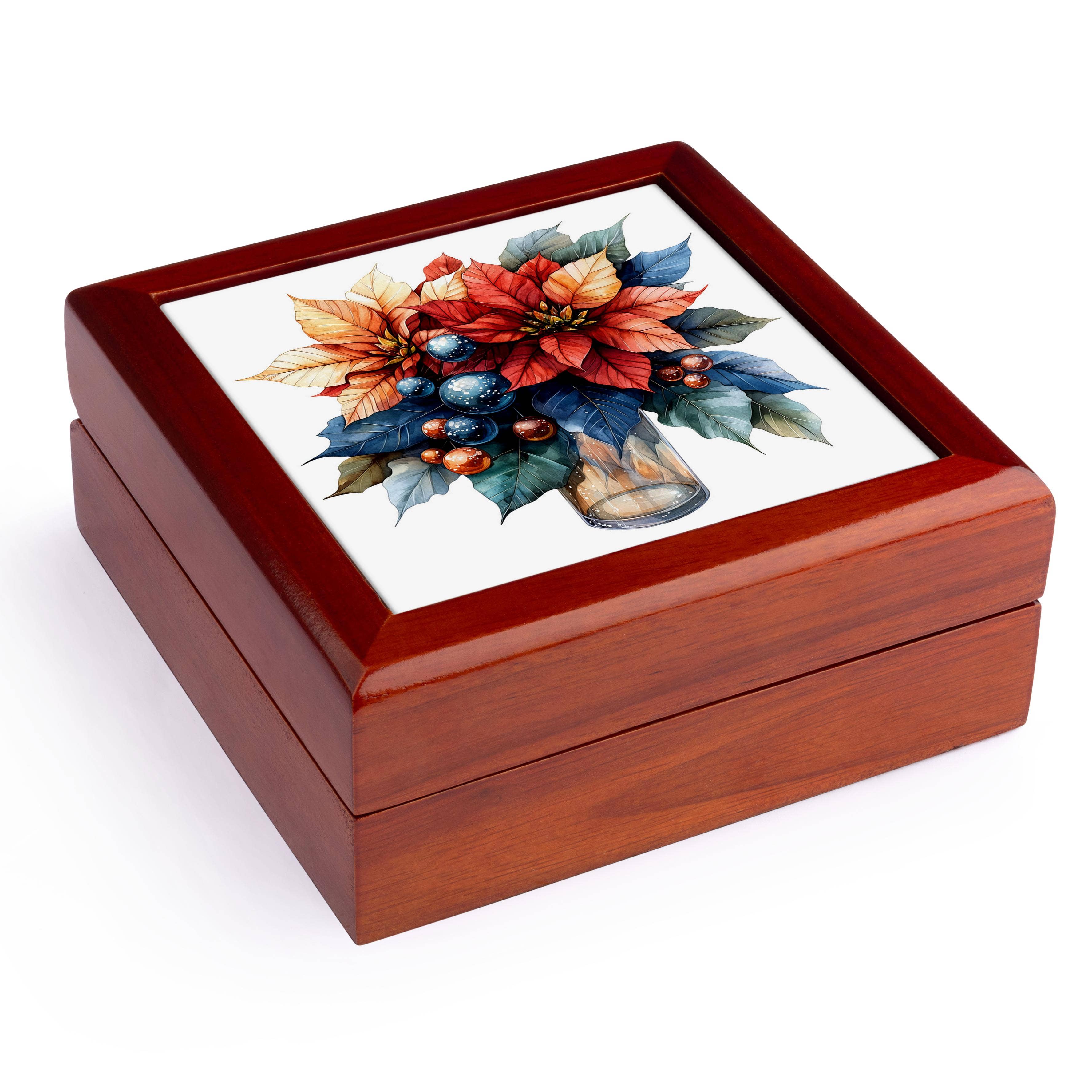 Boîte à bijoux en bois sculpté avec motif marguerite, 15 x 10 cm en vente B2B