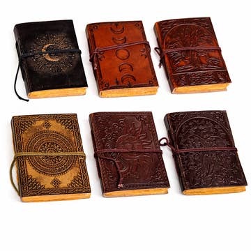 Superbe journal recouvert de cuir fait main, équitable et respectueux de l'environnement. Le cuir a été gaufré par des artisans locaux qualifiés. Idéal pour tous ceux qui ont une passion pour écrire, dessiner, peindre ou simplement gribouiller. Ces journaux contiennent 125 pages de papier khadda fait main non doublé, fabriqué par une association caritative pour femmes à partir de coton recyclé qui a été laissée par l'industrie du vêtement massive en Inde. Ils sont faits à la main et ne contiennent aucun produit chimique, car nous utilisons uniquement du coton non blanchi. Ce journal est disponible simplement en relief ou, pour un look plus intrépide, il peut être cousu à l'extérieur. Le cuir a été tanné par nos fournisseurs et les journaux ont été fabriqués en utilisant un mélange d'amour, de compétences contemporaines et traditionnelles. Le gaufrage a été créé de manière experte à l'aide de petits outils faits à la main, ce qui rend chaque journal unique. En raison de la nature de ces journaux en cuir, le motif en relief peut ne pas être identique à celui de l'image. Dimensions : 21,5 x 13,5 cm