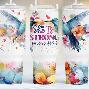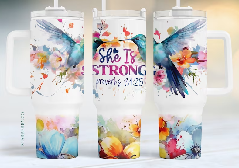 Mug SS Camp violet She is Clothed with Strength Prov. 31:25 en vente B2B