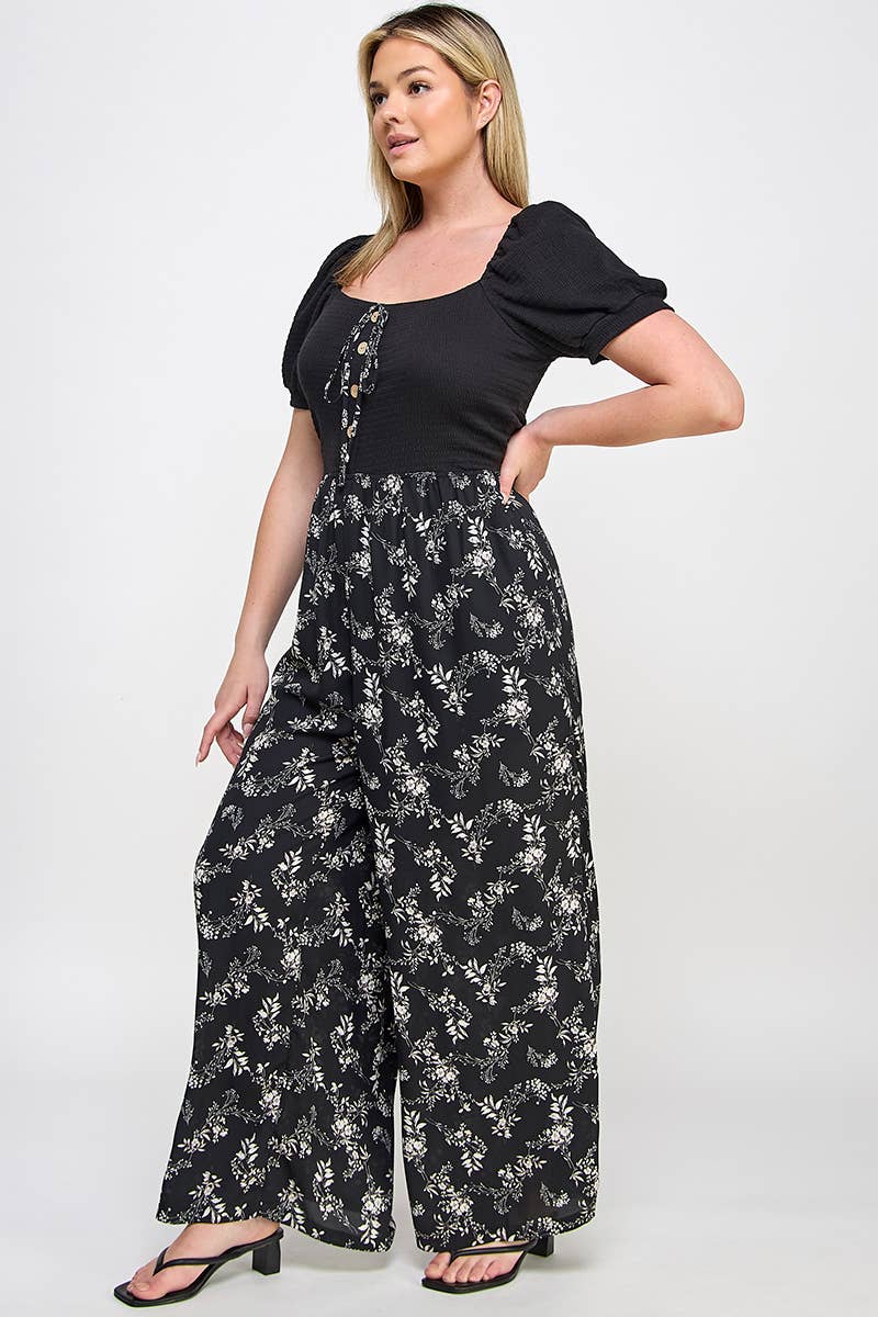 Salopette grande taille avec détails plissés, poches, bretelles ajustables à double bouton et coupe jambes larges, signée Haute Fox. • Vêtements femme grande taille • Salopettes grande taille • Tailles disponibles : 1X, 2X, 3X • Disponible aussi en taille classique