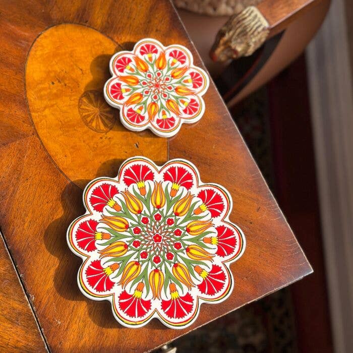 Ce dessous de plat rouge rustique en fonte blanchie à la chaux en forme de cœur de 7 pouces est un sous-plat amusant en forme de cœur qui apporte de l'amour à n'importe quel décor de cuisine. Fabriqué à la main par nos maîtres artisans, ce dessous de plat est la pièce idéale pour ajouter une touche romantique à n'importe quelle cuisine.Disponible dans différents styles. Fabriqué à la main en fonte Excellente décoration de cœur. Livré avec quatre housses en caoutchouc pour pieds de dessous de plat.