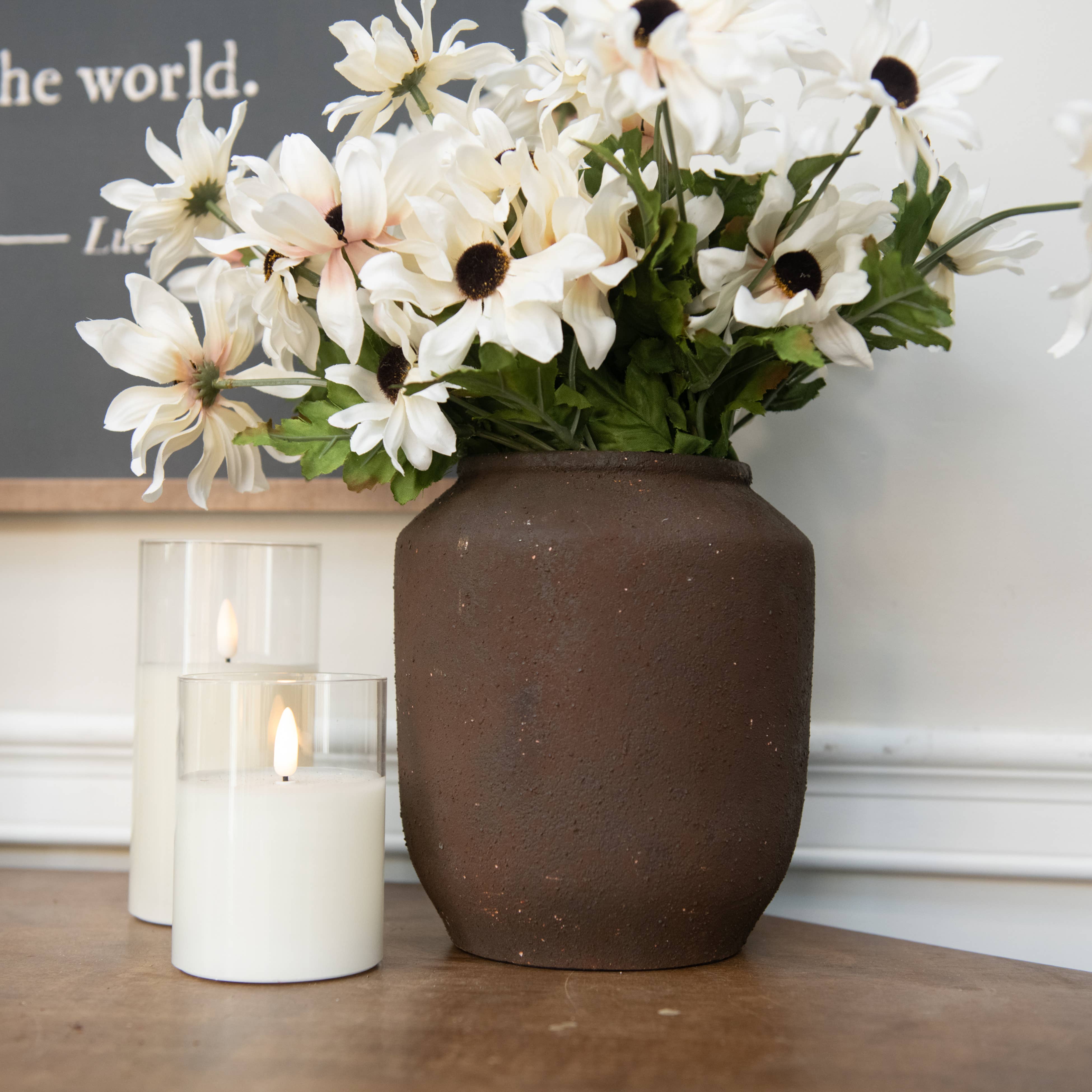 Céramique | Bougies non incluses : 6 po H x 4 po L x 4,5 po P x 3 po de diamètre, 5 po H x 4,25 po L x 4 po P x 3 po de diamètre, 4 po H x 4 po L x 4,25 po P x 4 po de diamètre Desc du paquet : Pk/03 Ast