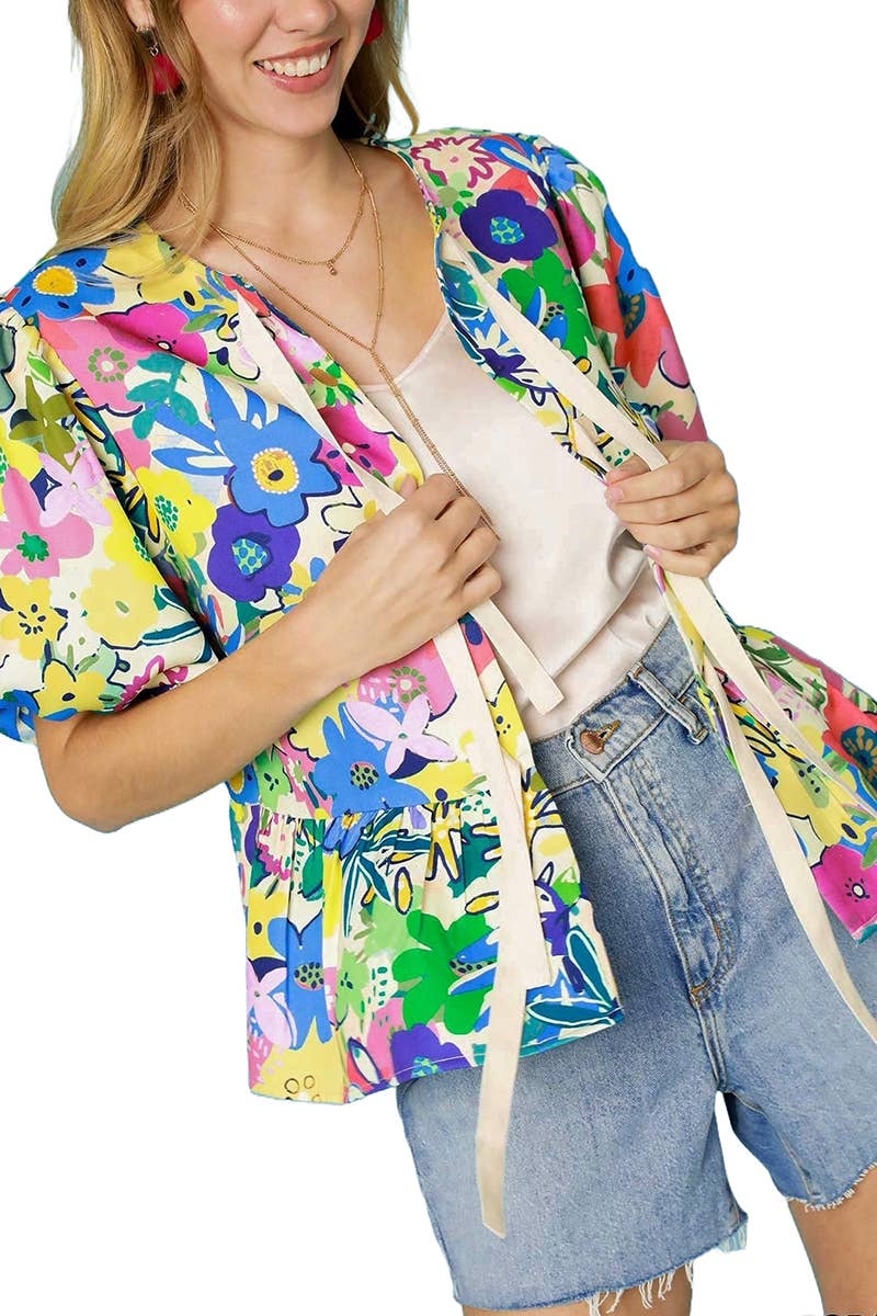 Blouse ample à manches courtes bouffantes avec col imprimé fleuri | S-XL en vente B2B